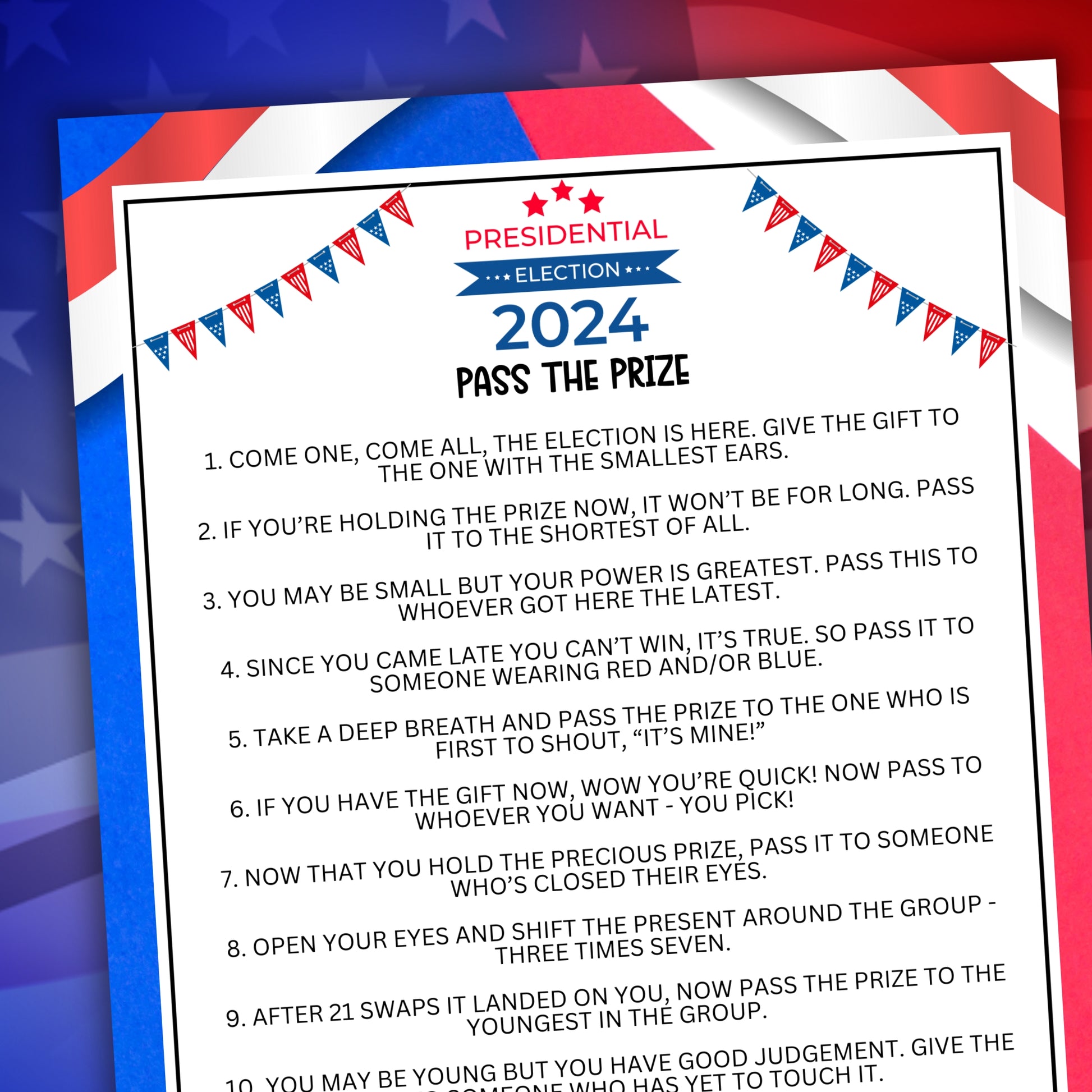 Are you hosting a 2024 Election Watch Party and need a fun, engaging activity to keep the excitement going? This election-themed Pass the Prize game from Party Prints Press is just what you need to set the perfect tone!