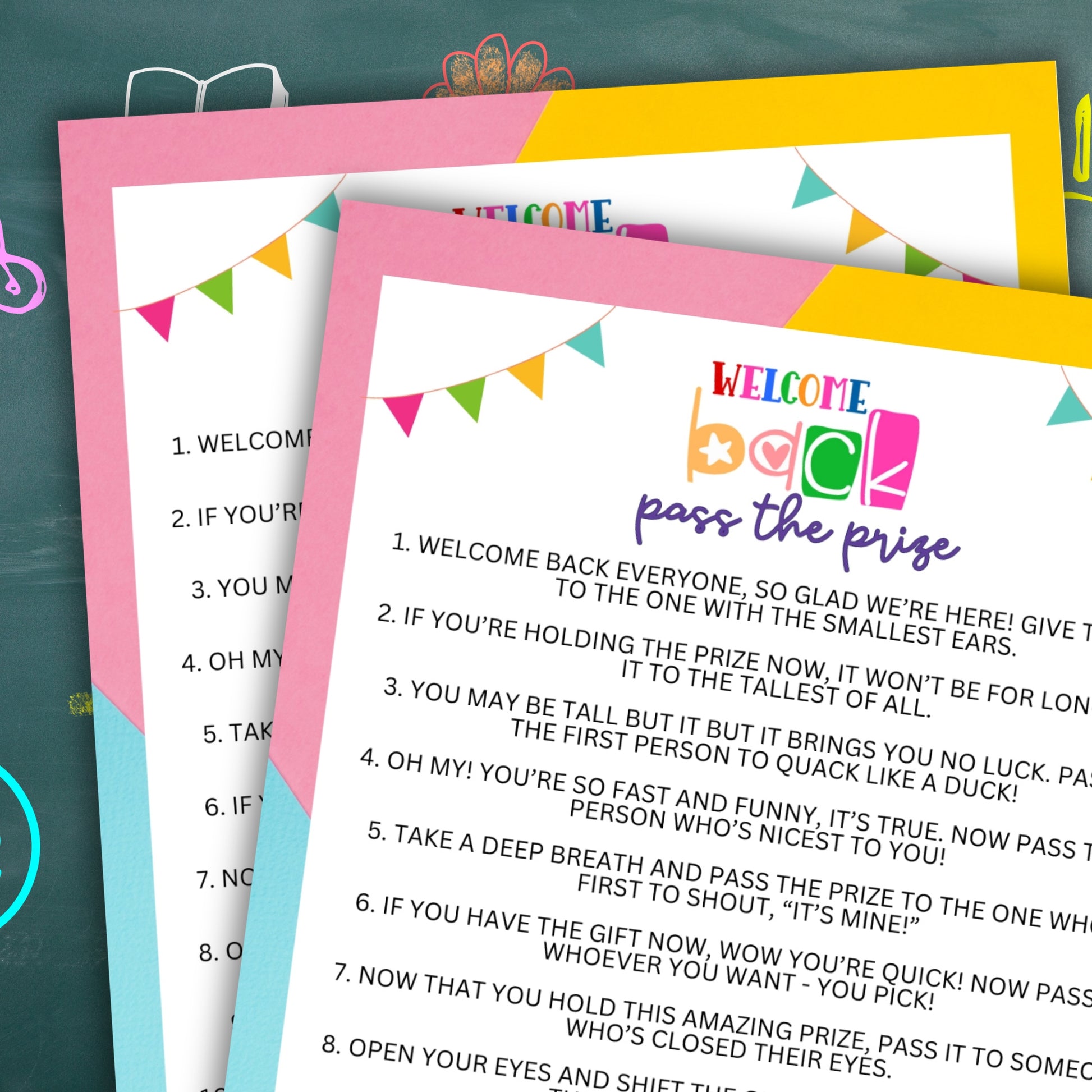 Whether you've got young kids or older teens in your classroom (or even just a few teachers together celebrating a fresh new start), this fun Pass The Prize game from Party Prints Press is just what you need!