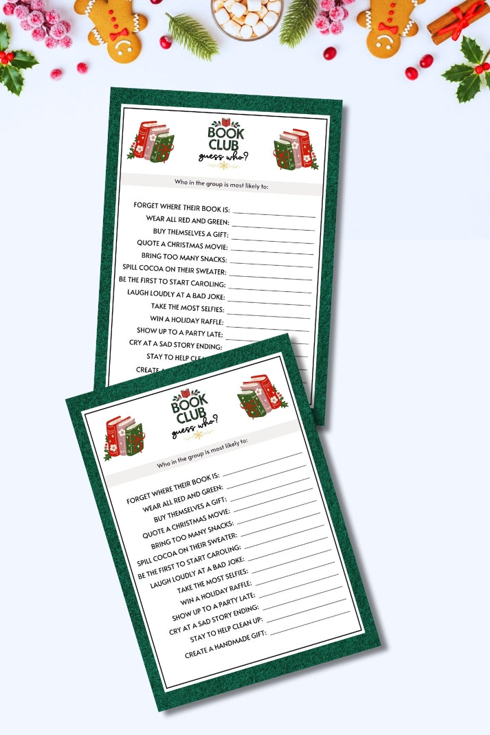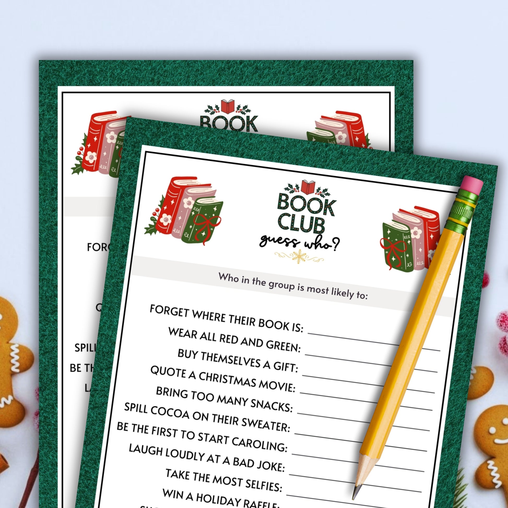Get ready to fill your book club Christmas party with laughter and cheer with the Book Club Christmas Guess Who Game from Party Prints Press!