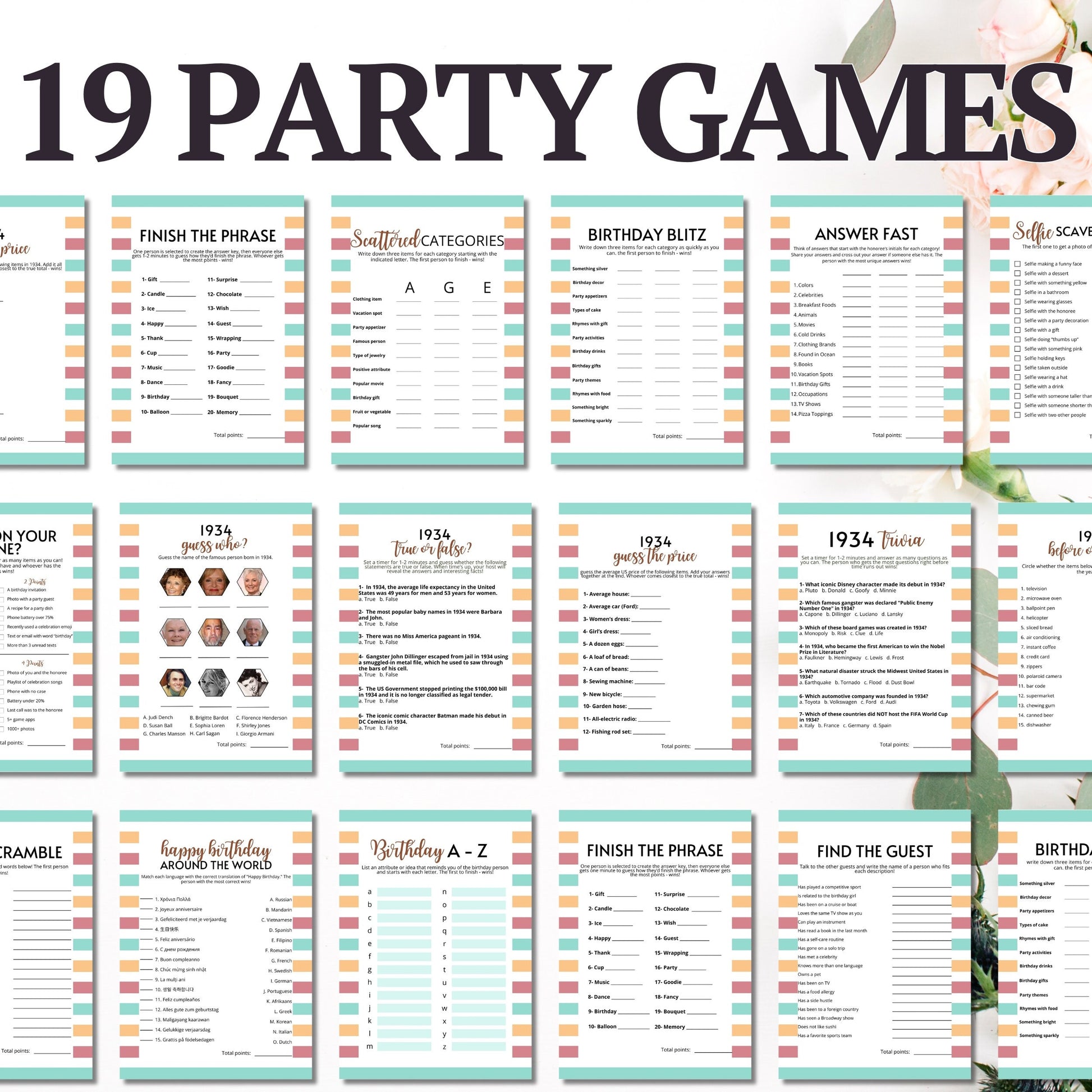Make your loved one's 90th birthday party one for the books with this ultimate party pack of 19 engaging games designed to celebrate the milestone of women and men born in 1934, turning 90, and celebrating their 90th birthdays in 2024!