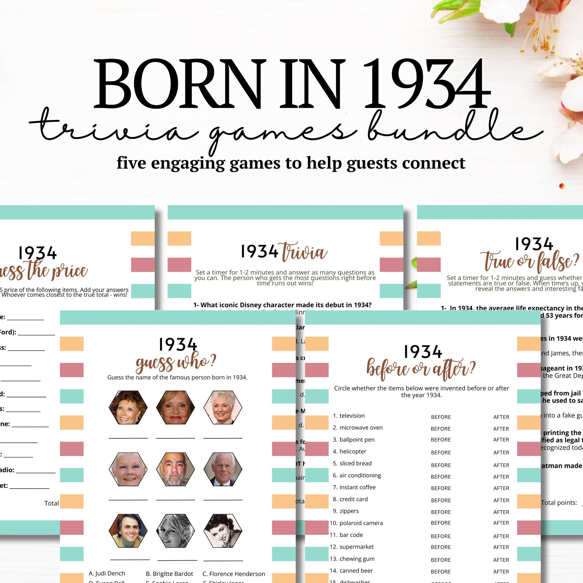 Our 1934 trivia game bundle will transport guests back in time to the year the birthday honoree was born, testing their knowledge in a fun and interactive way.