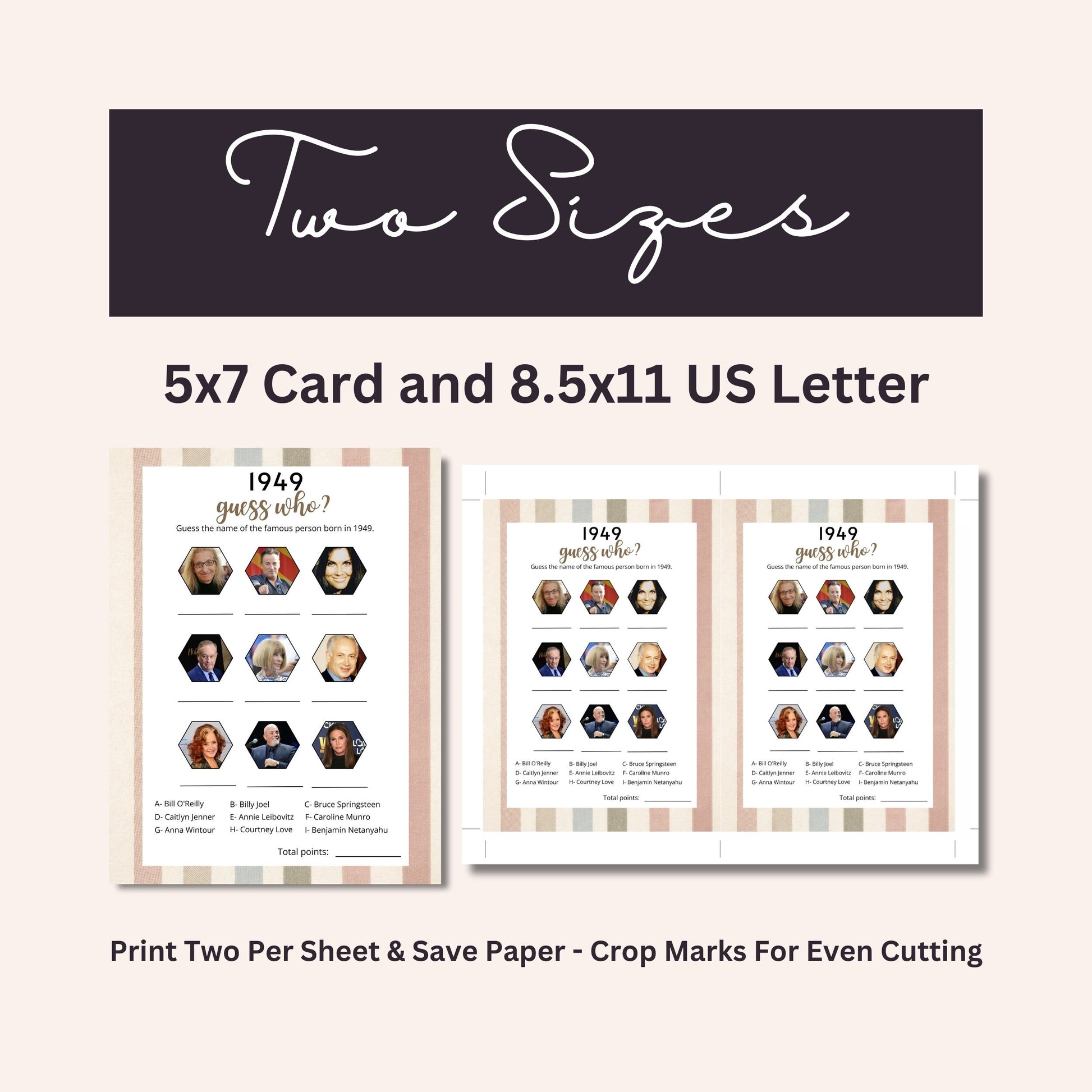 Our 1949 trivia game bundle will transport guests back in time to the year the birthday honoree was born, testing their knowledge in a fun and interactive way.