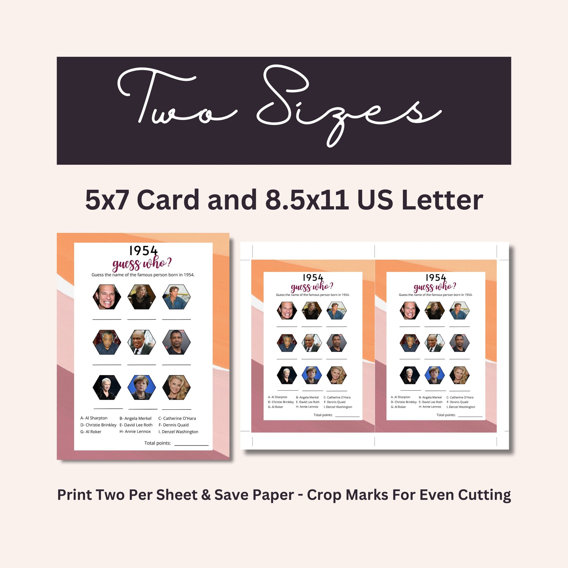 Our 1954 trivia game bundle will transport guests back in time to the year the birthday honoree was born, testing their knowledge in a fun and interactive way.