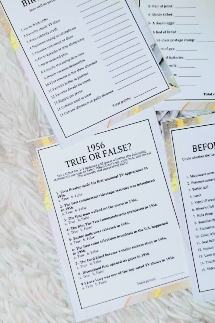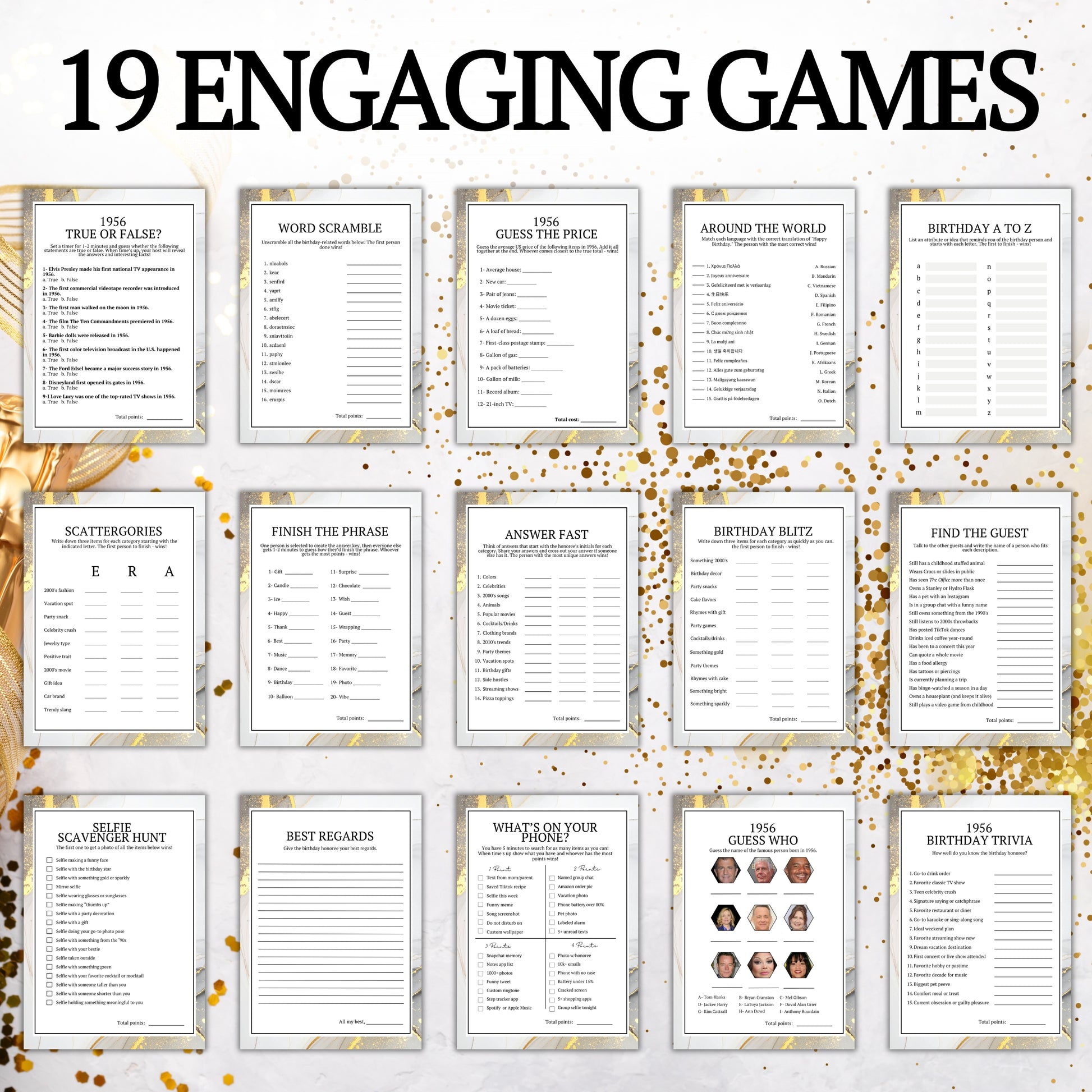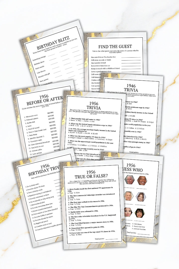 Born in 1956 Printable Birthday Game Bundle — 70th Birthday Party Games for Adults