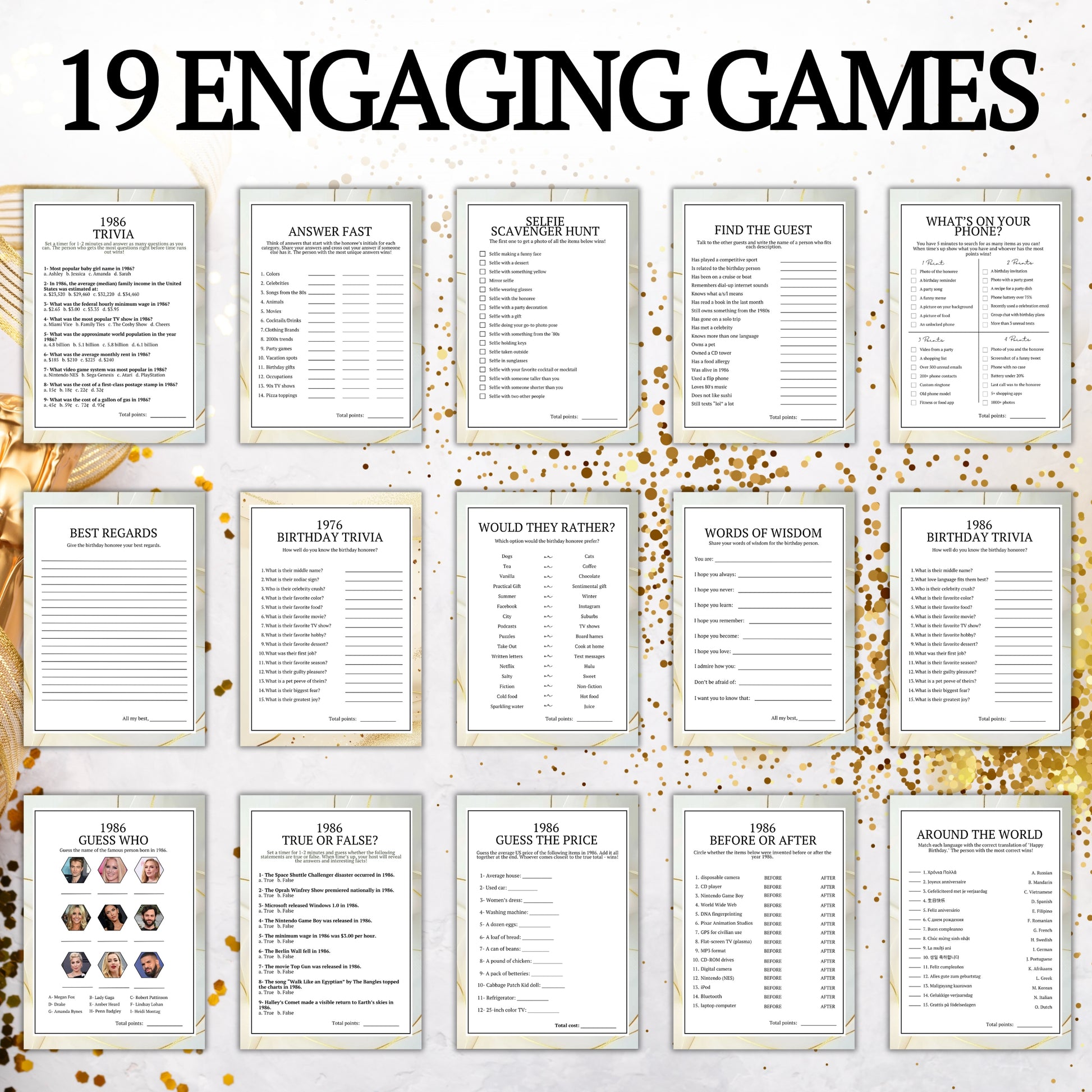 Born in 1986 Printable Birthday Game Bundle — 40th Birthday Party Games for Adults