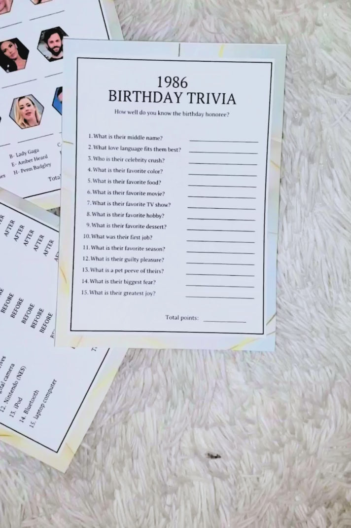 Celebrate turning 40 with this elegant collection of printable birthday games made especially for those born in 1986.