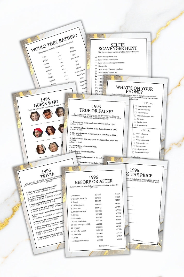 Celebrate turning 30 with this stylish collection of printable birthday games made especially for those born in 1996.