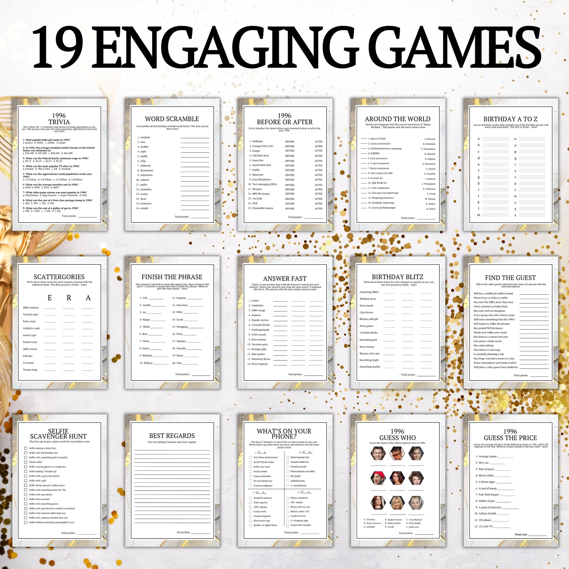 Born in 1996 Printable Birthday Game Bundle — 30th Birthday Party Games for Adults