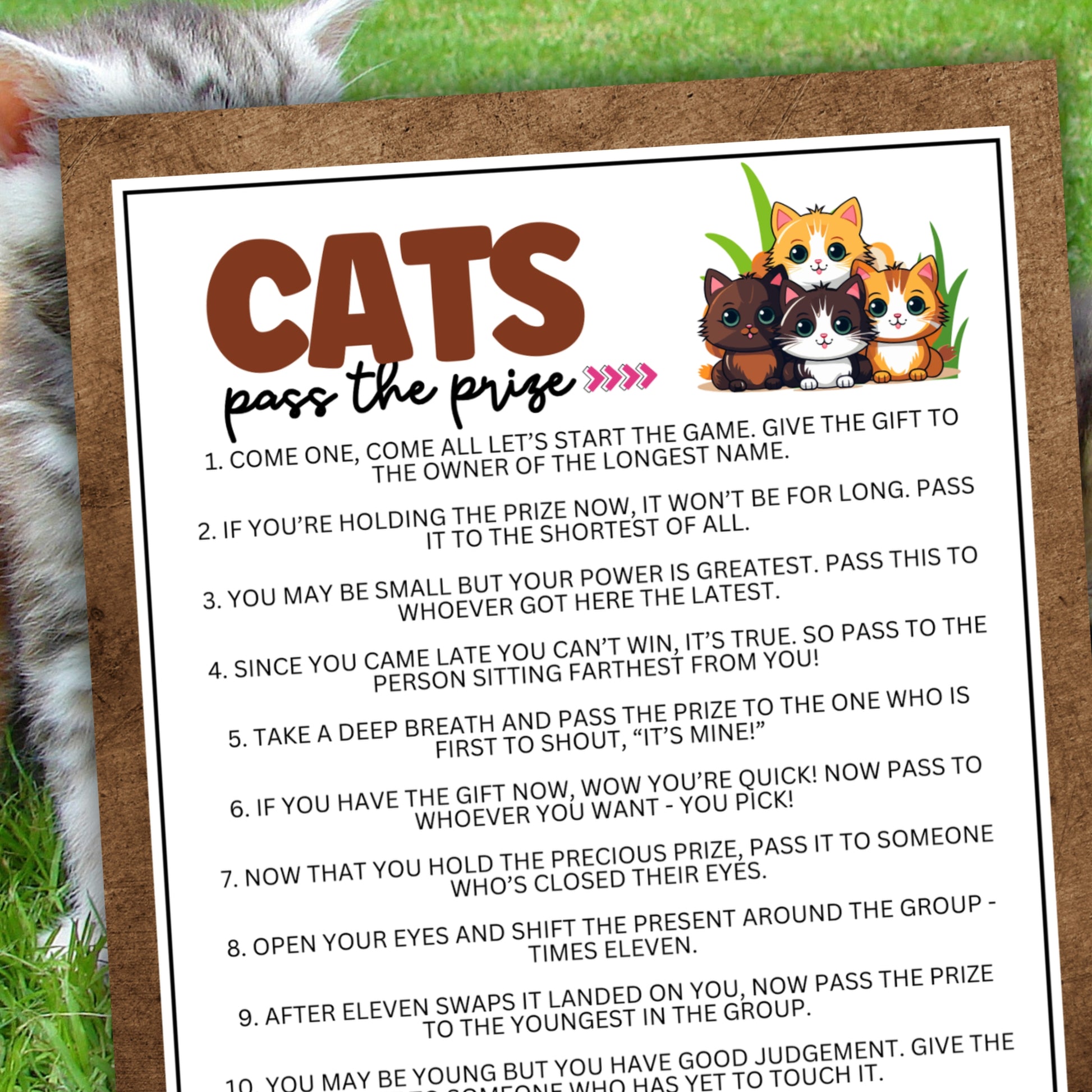 Looking for a purr-fect way to add some fun to your next cat-themed gathering? This Cats Pass The Prize game is ideal for pet adoption celebrations, kitten lover events, cat-themed birthdays, or any gathering with feline fanatics!