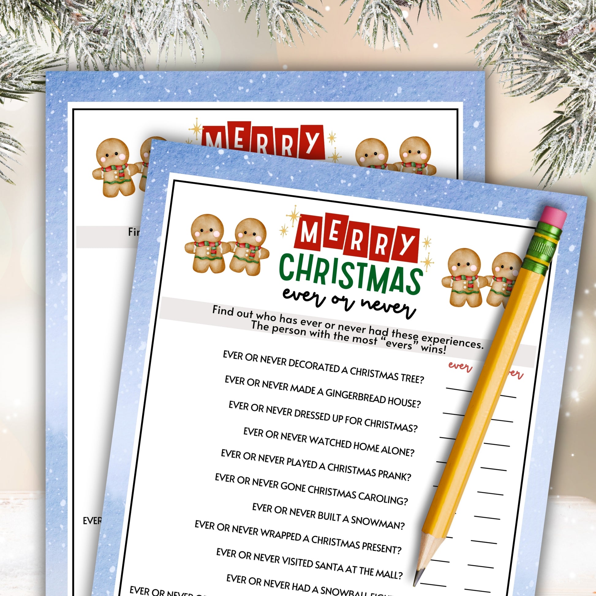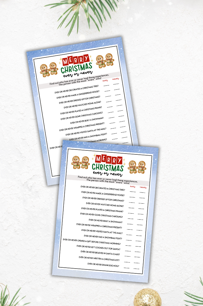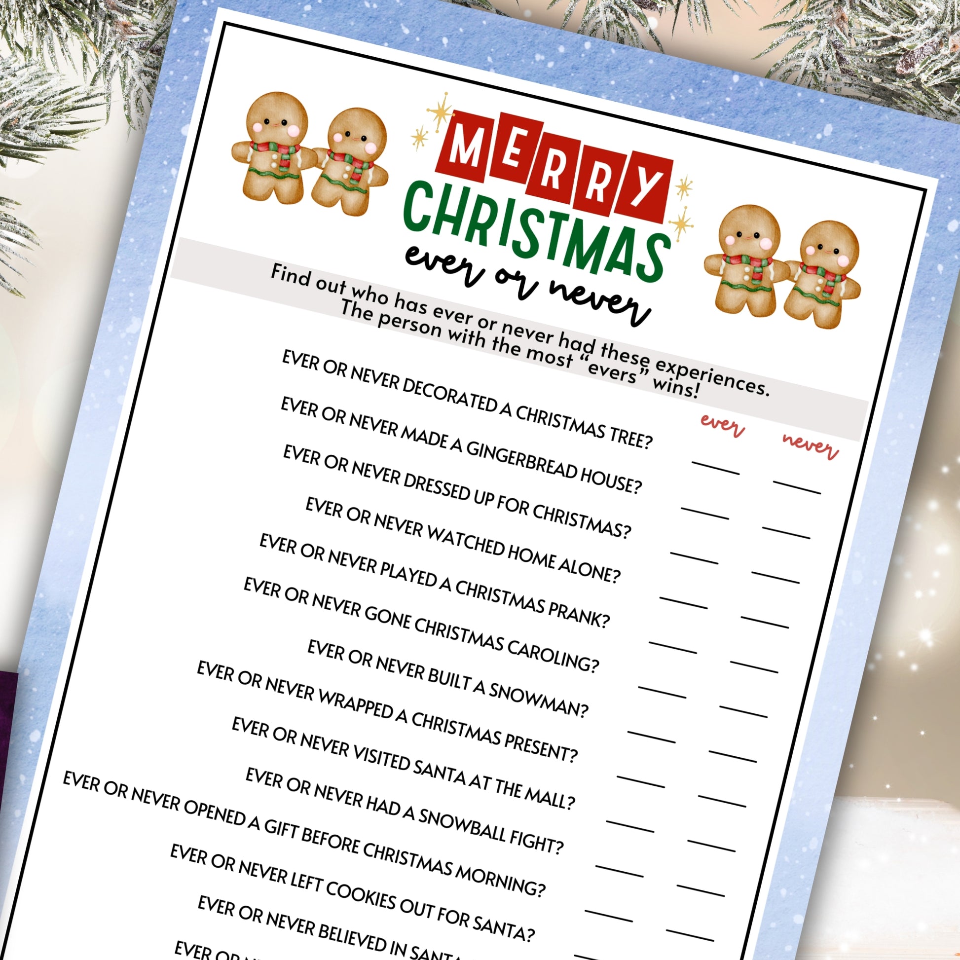 This festive Ever or Never Game is perfect for parties, family gatherings, or any occasion where you want to add a little holiday fun. Easy to play and sure to entertain, it's the ultimate addition to your Christmas festivities.