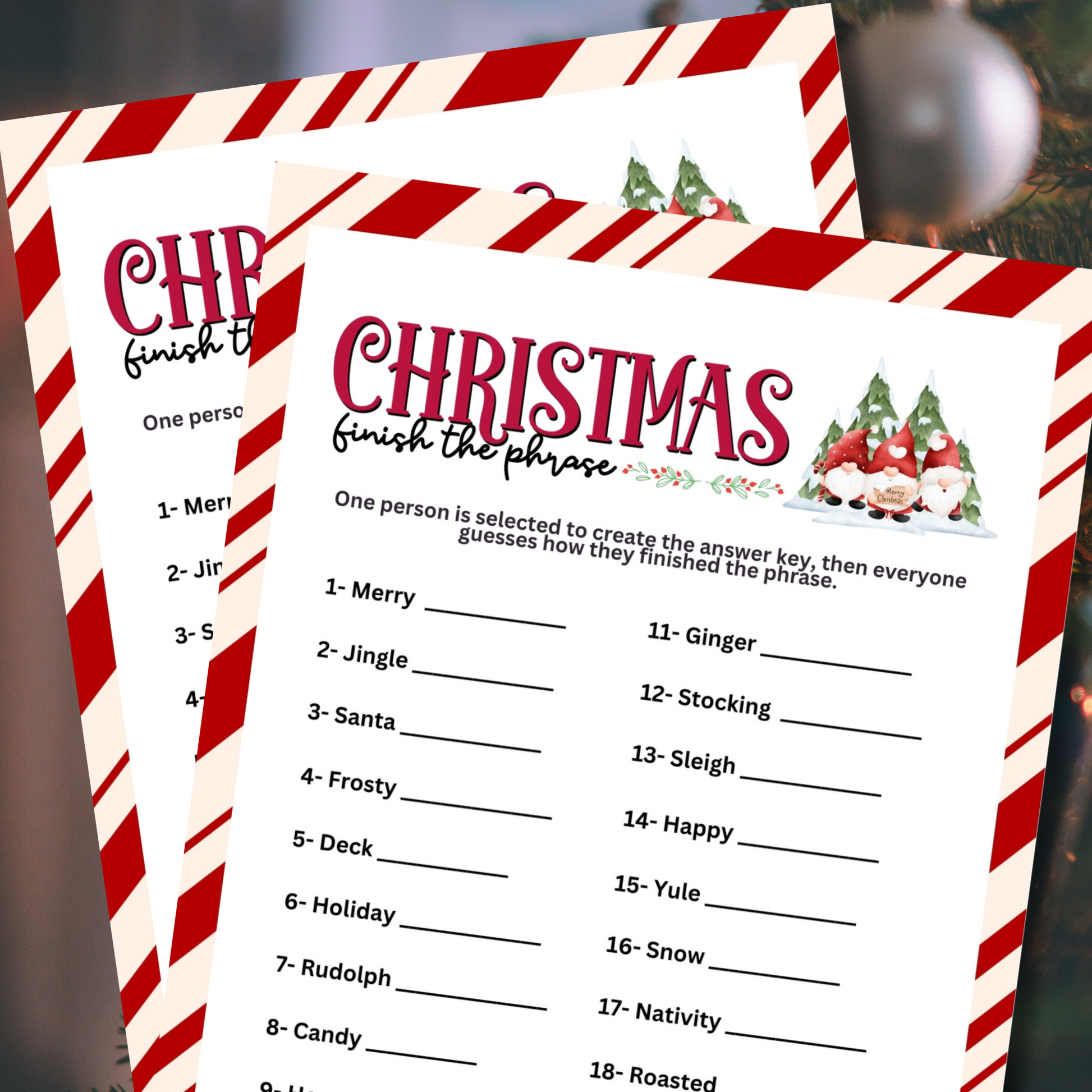 Celebrate Christmas and get into the holiday spirit with this simple and fun "Finish the Phrase" game from Party Prints Press!