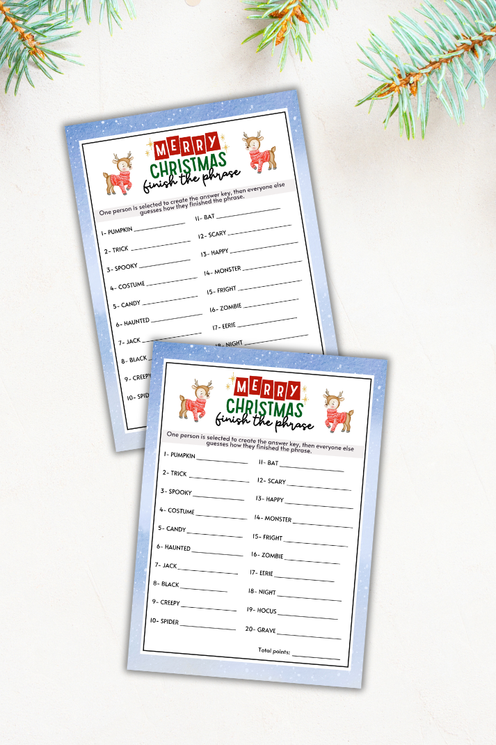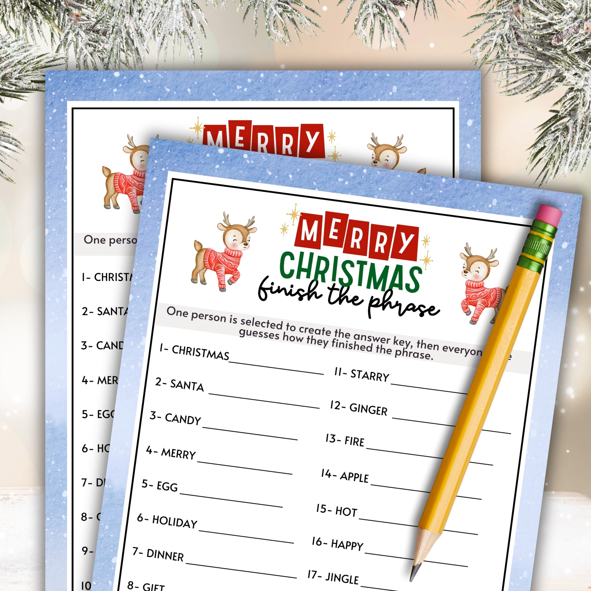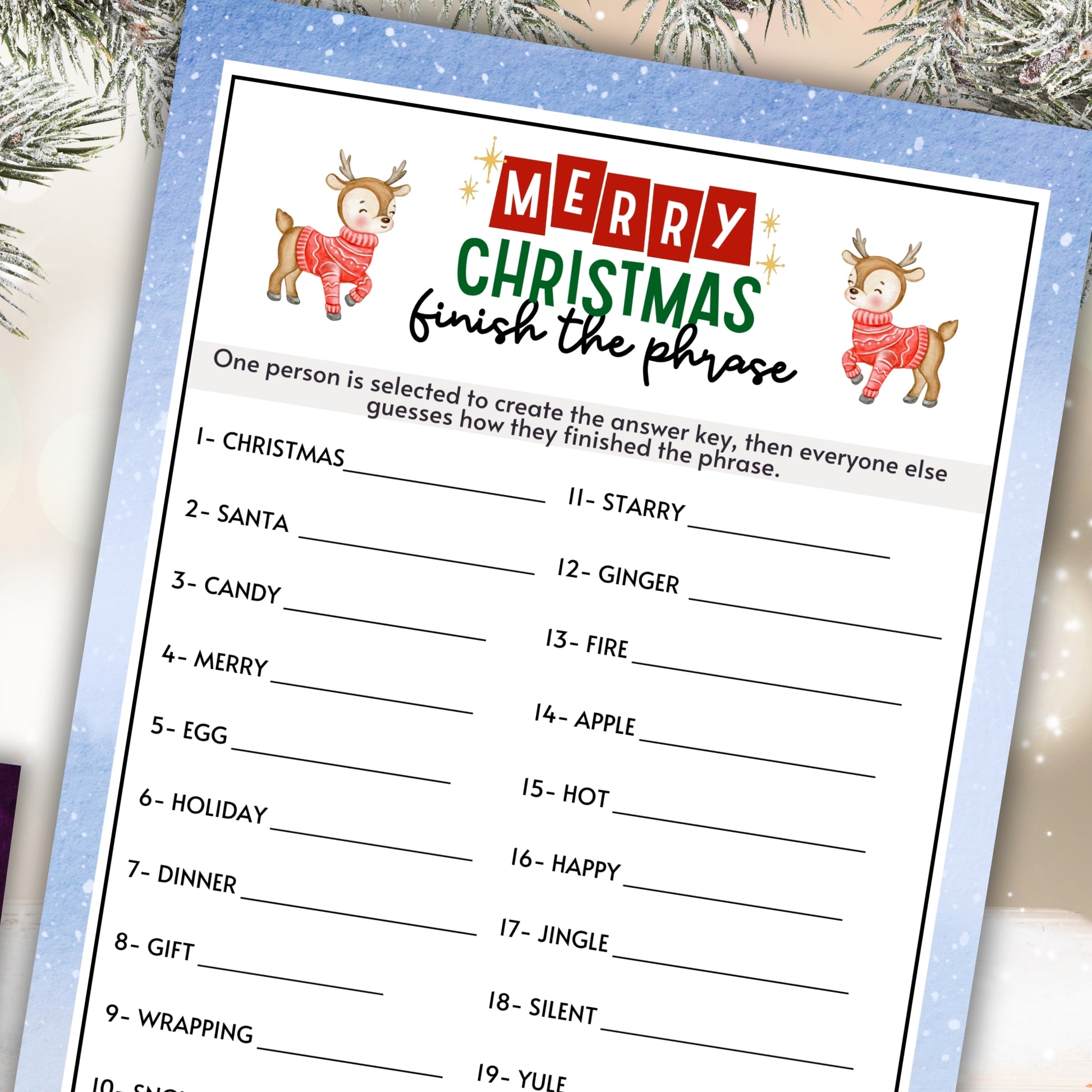 Celebrate Christmas and get into the holiday spirit with this simple and fun "Finish the Phrase" game from Party Prints Press!