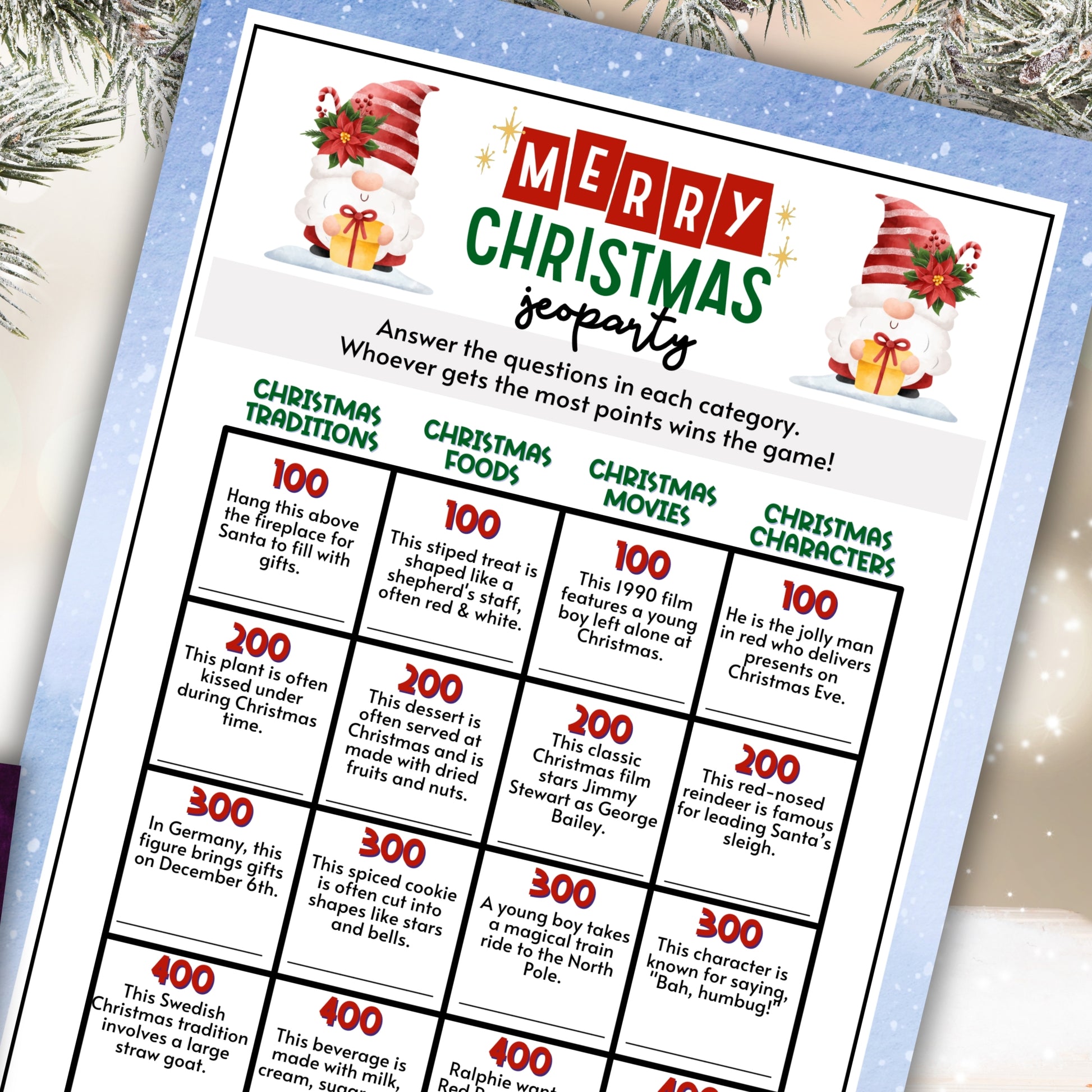 If you’re looking for a Christmas game that’s both entertaining and educational, the Xmas Jeoparty Game is a perfect choice. Get ready to test your smarts and see who knows the most about Christmas!