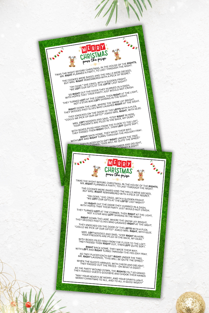 -Read the poem aloud and follow the instructions - when the poem mentions the word "Left," the gift goes left, and the same for "Right"