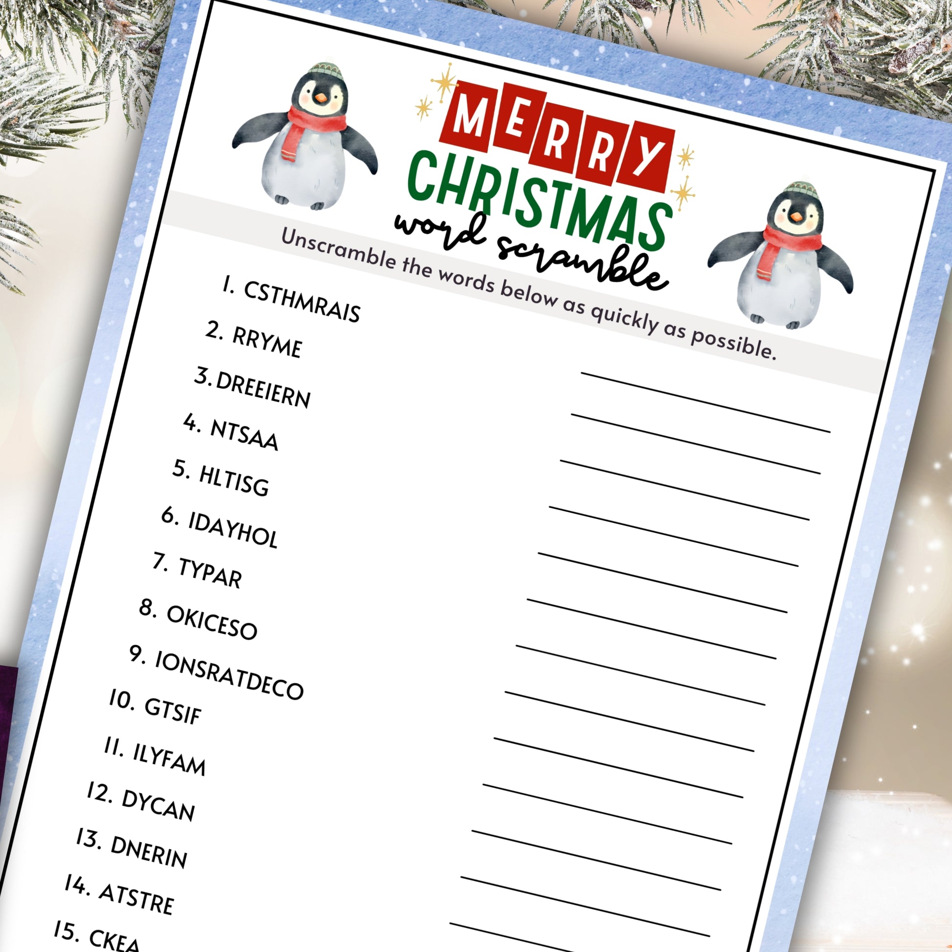 This game allows you and guests of all ages to have fun deciphering a variety of Christmas-themed words.