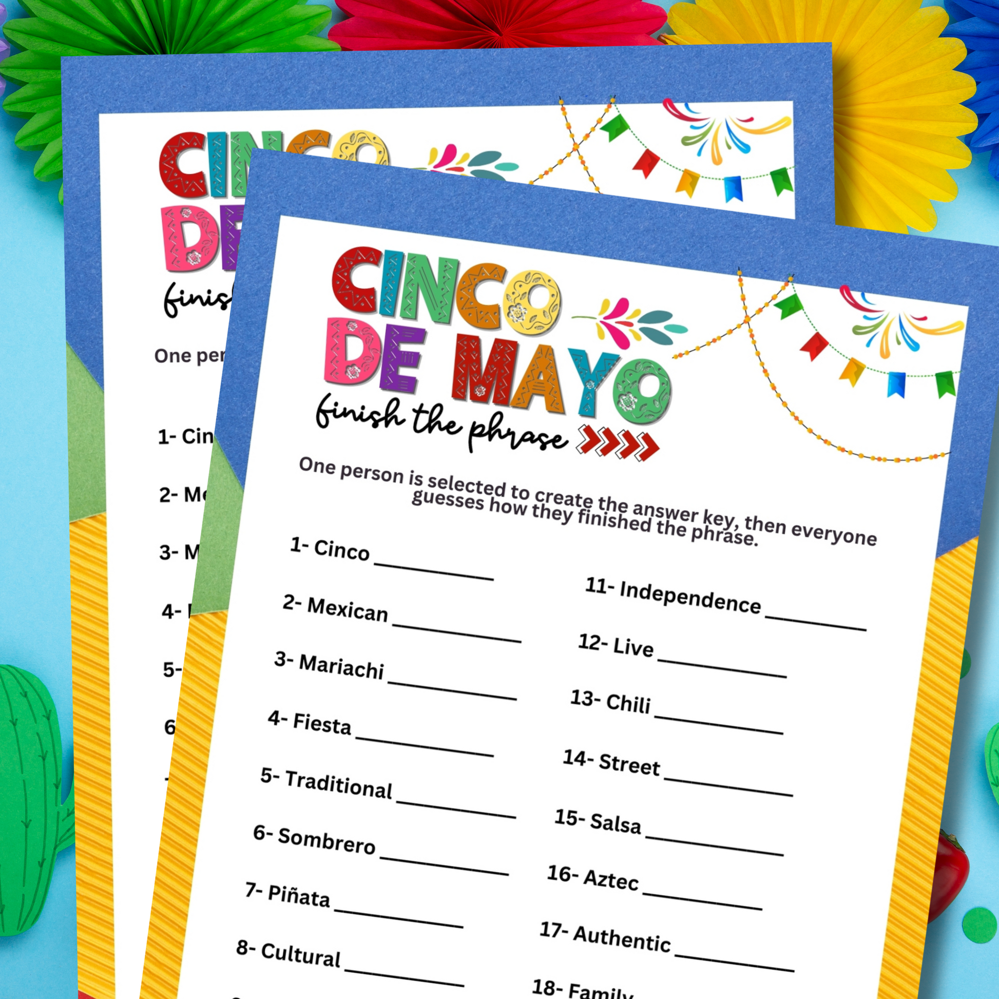 Celebrate Cinco de Mayo with this simple and fun "Finish the Phrase" game from Party Prints Press!