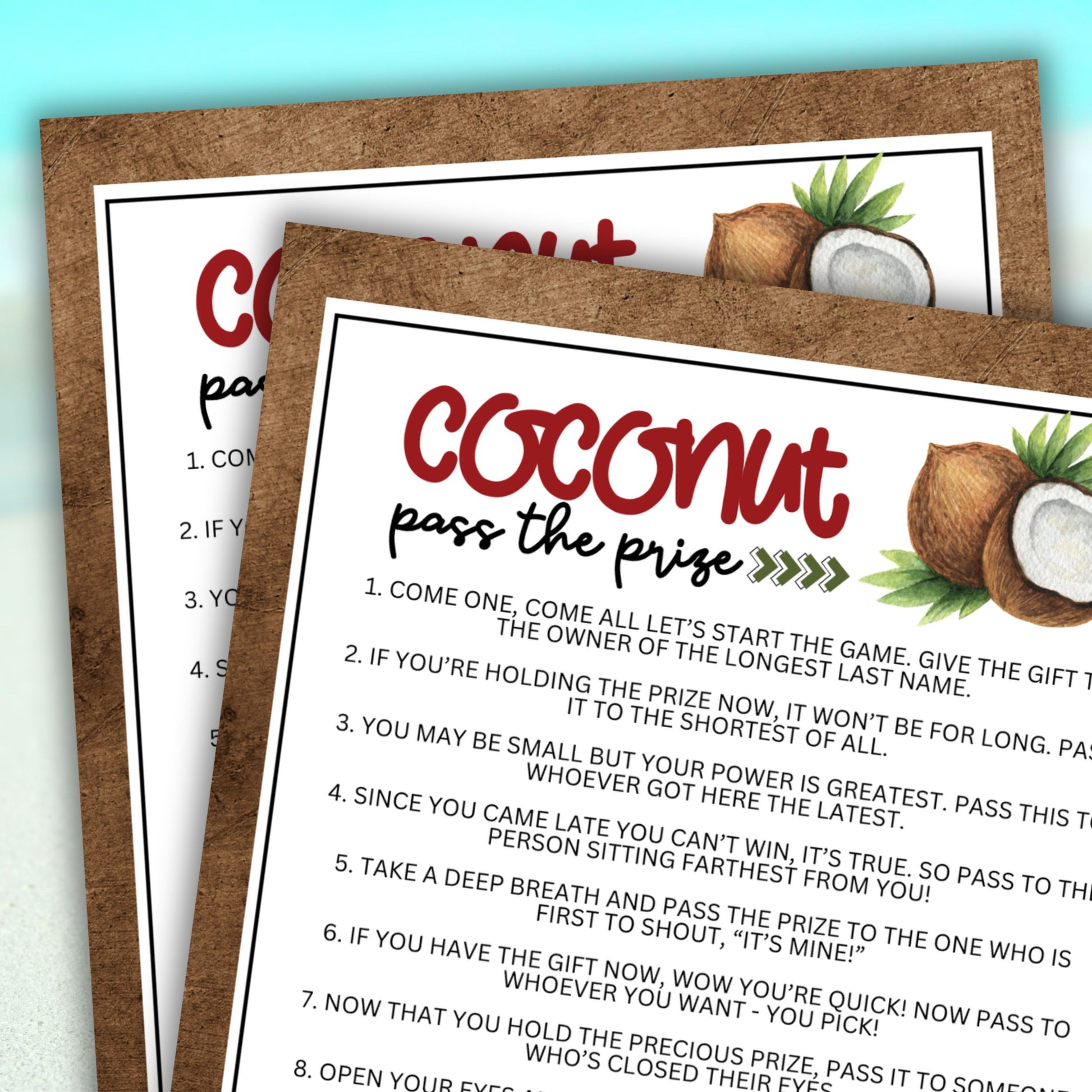 Bring the spirit of aloha to your next celebration with this Coconut Pass the Prize Left Right Game! Perfect for luau parties, Hawaiian-themed birthdays, tropical beach gatherings, classroom activities, or family fun nights, this engaging game will have kids, tweens, and families laughing and enjoying island-inspired fun.