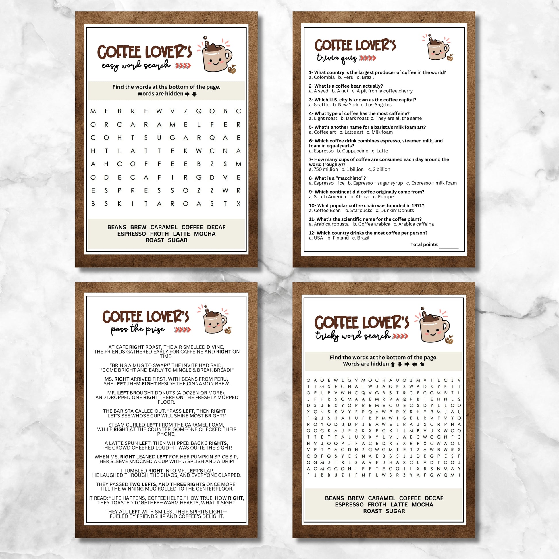 Brew up some laughter with this Coffee Lovers Printable Games Bundle!
