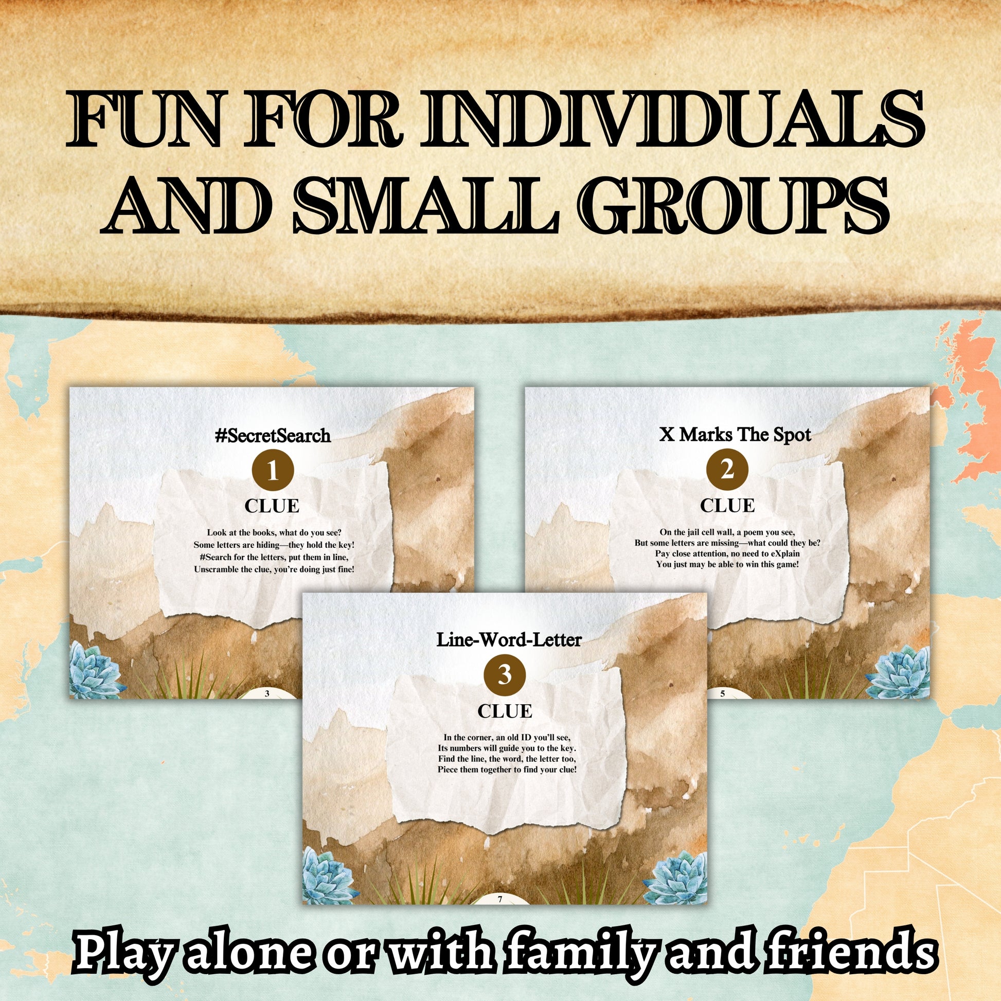 But don’t worry—the sheriff left behind some clues and puzzles hidden around the cell. Work together to solve the puzzles, crack the codes, and find the key that will set you free!
