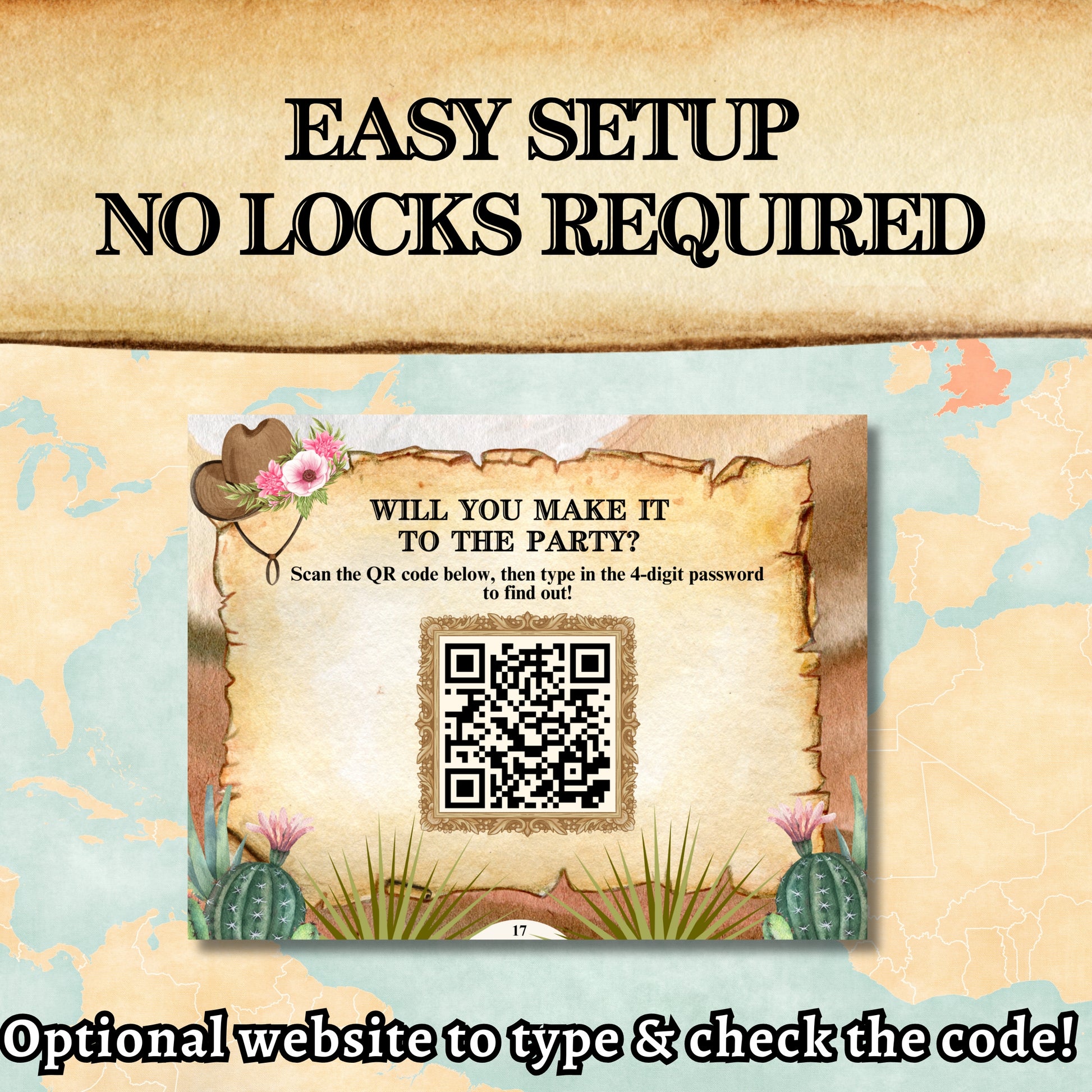 -Digital Reveal: Use the included QR code! Players scan the code, enter the 4-digit answer on their smartphone, and unlock a celebratory "Congrats! You Made It to the Party!" message.