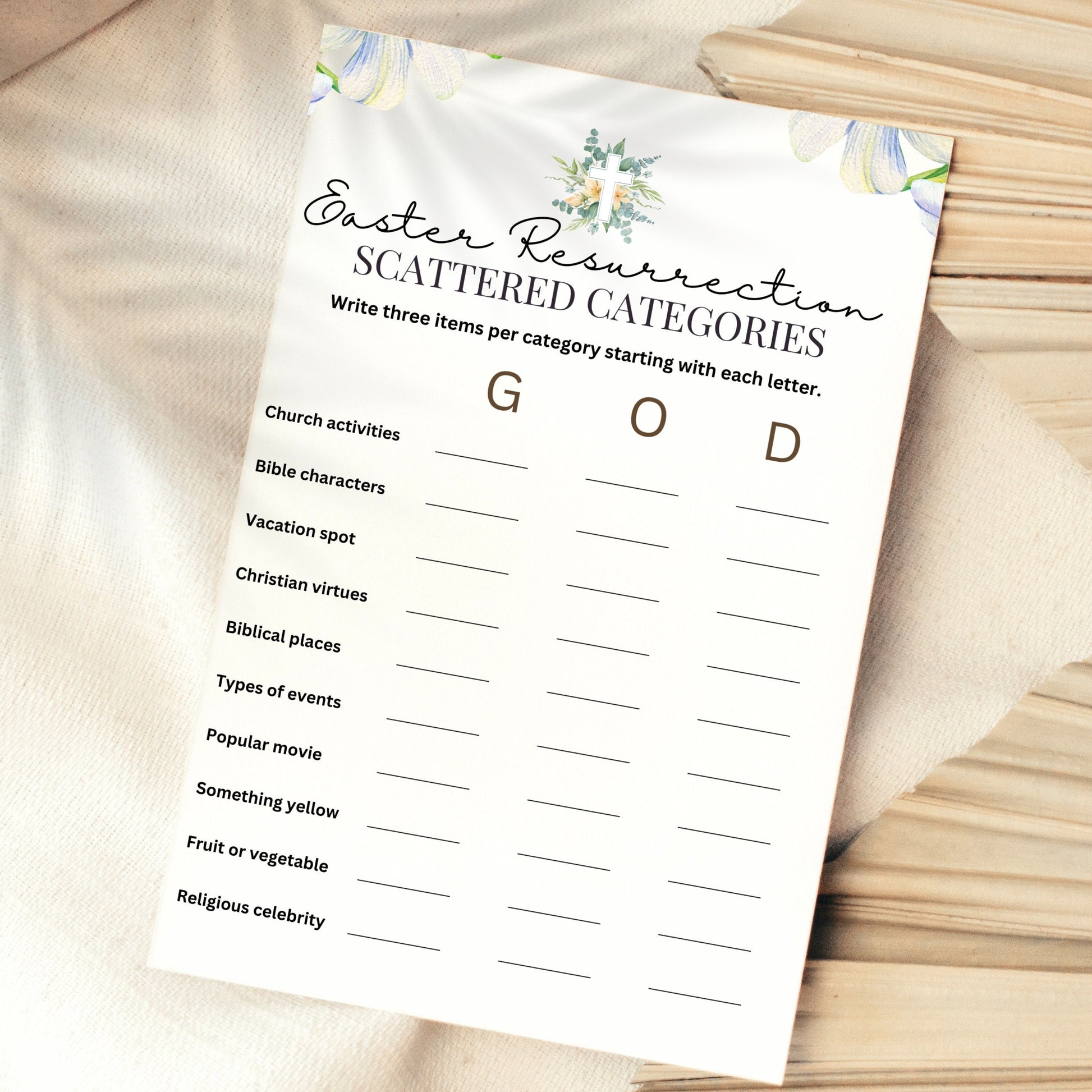 Celebrate Easter Resurrection with your church group, women's ministry, bible study, or tea luncheon with this fun and engaging scattered category game!