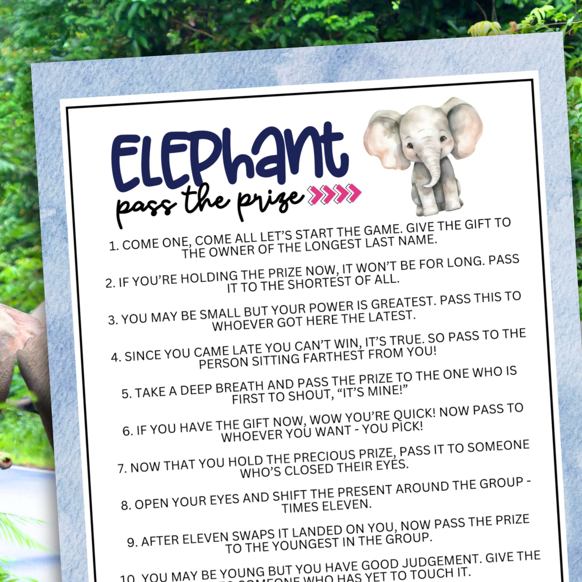 The game features a charming, elephant-themed poem that you can read aloud or print for guests to follow along.