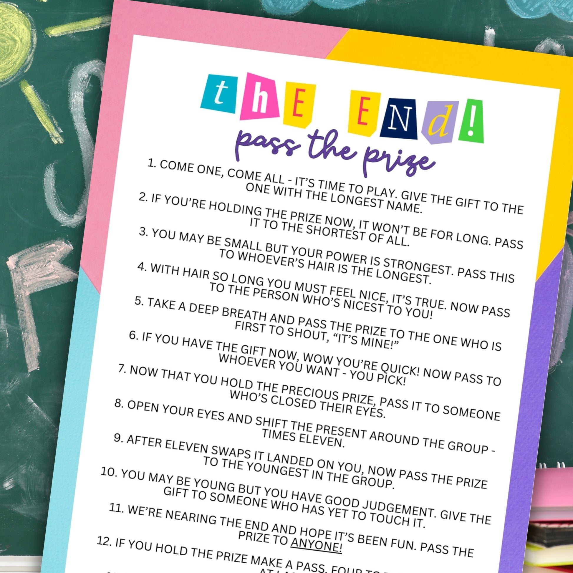 Whether you've got young kids or older teens in your classroom (or even just a few teachers together celebrating the upcoming summer break), this fun Pass The Prize game from Party Prints Press is just what you need!