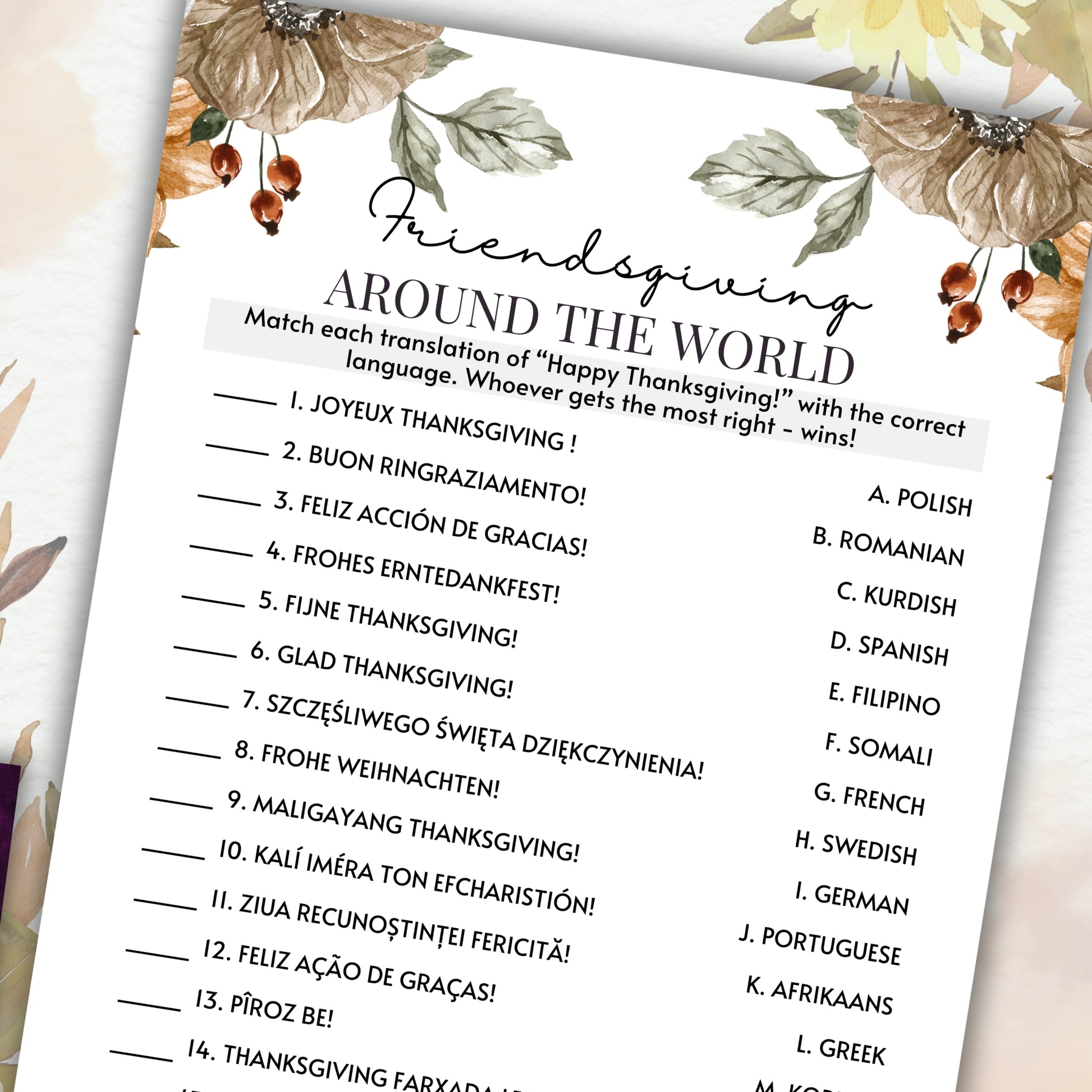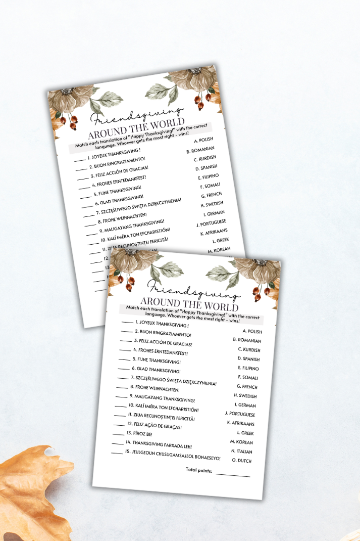 Make your Friendsgiving party unforgettable with this cute language translation game from Party Prints Press!
