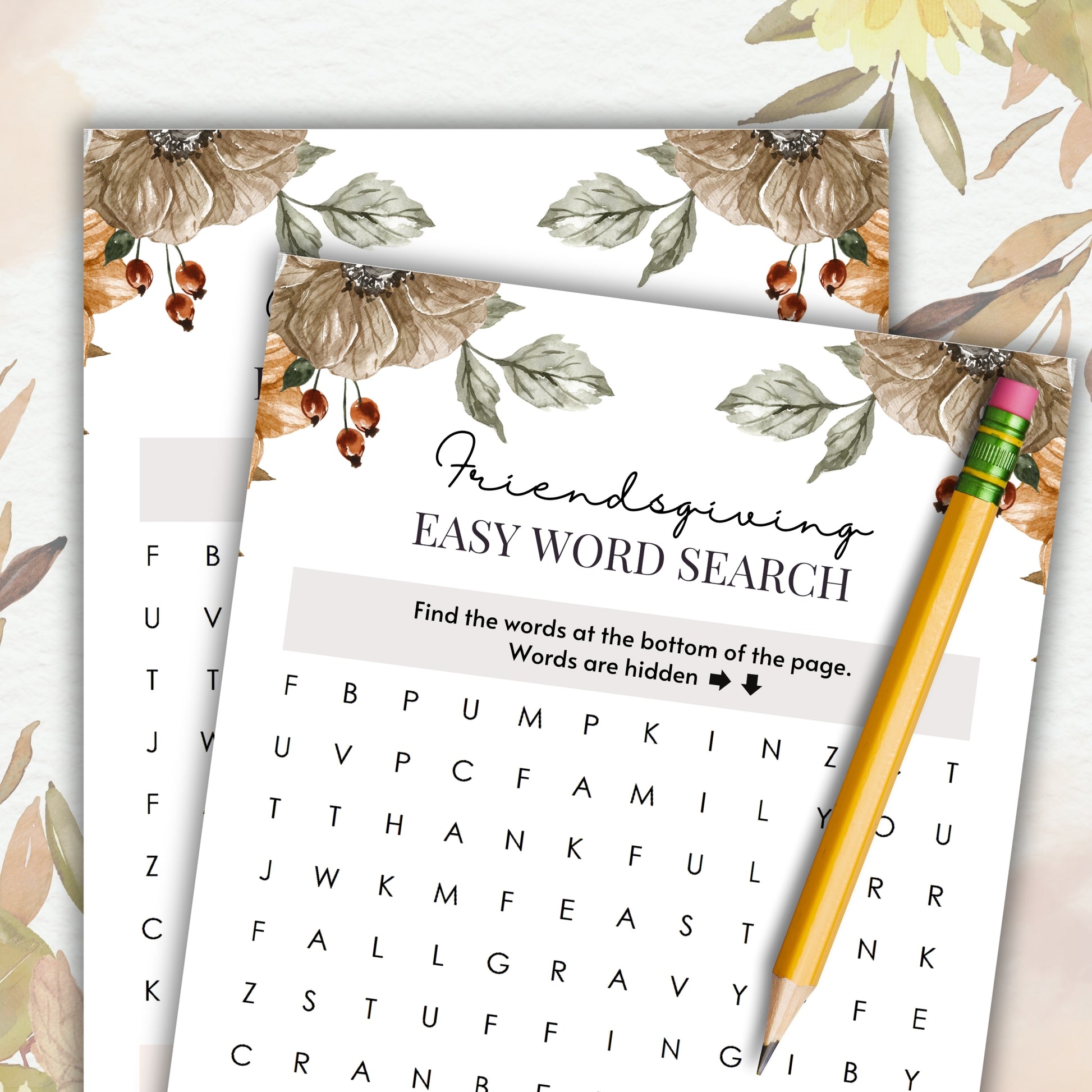 This super-simple word search is perfect for younger kids and teenagers or adults who want to casually enjoy a cute and fun game at any Friendsgiving or Thanksgiving event!