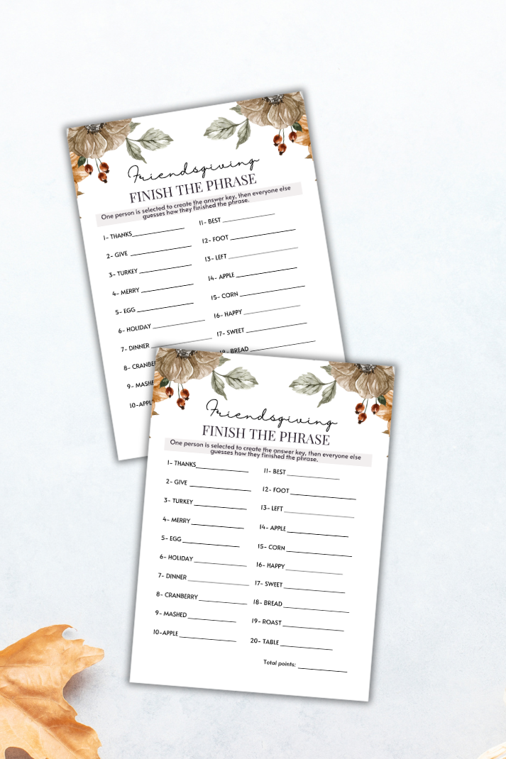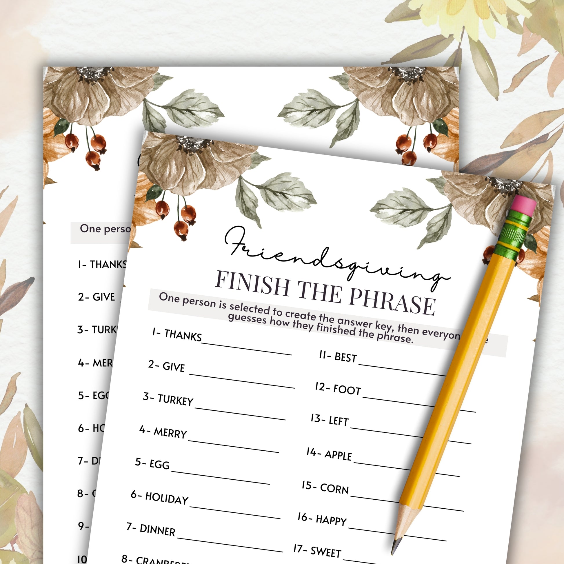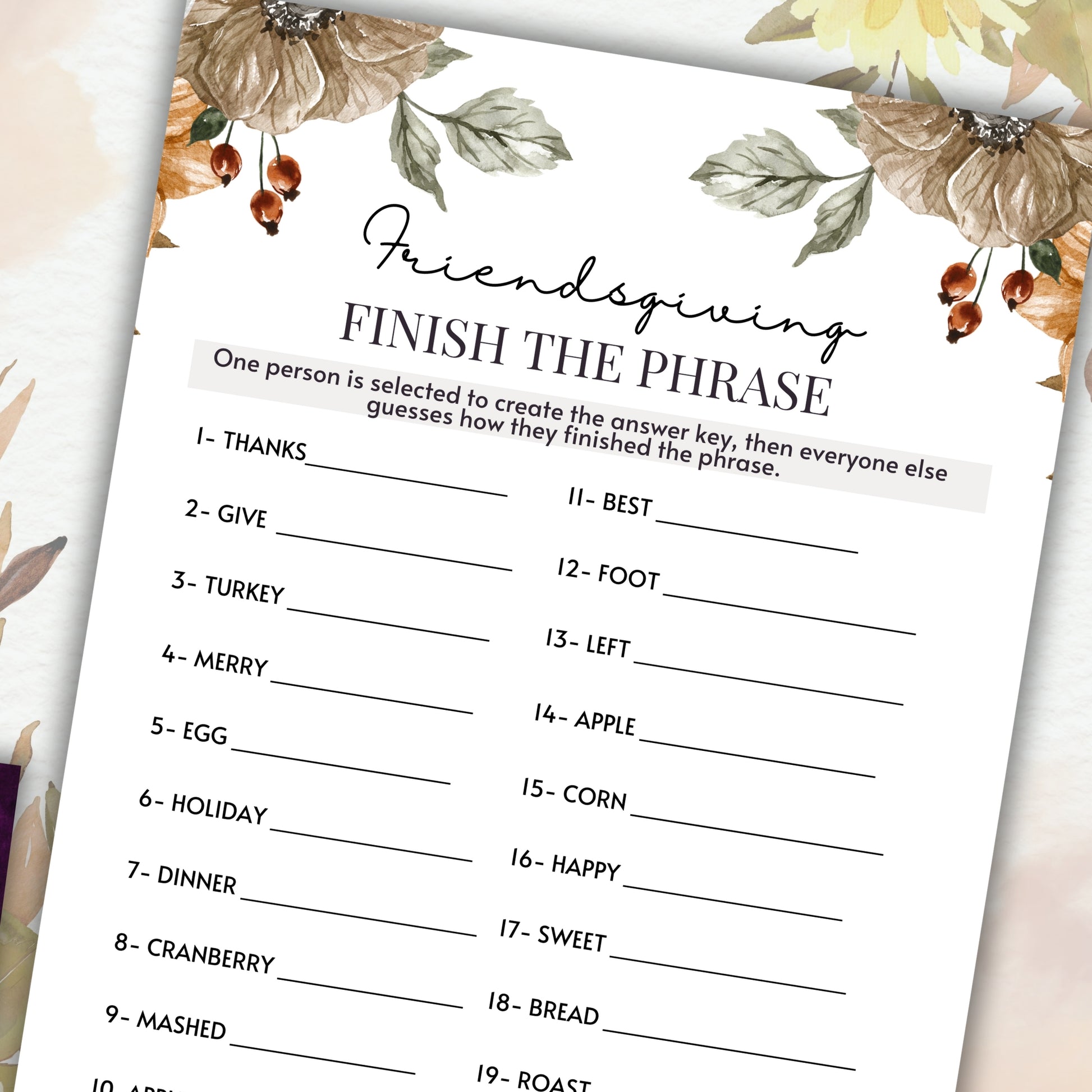 Celebrate Thanksgiving and get into the holiday spirit with this simple and fun "Finish the Phrase" game from Party Prints Press!