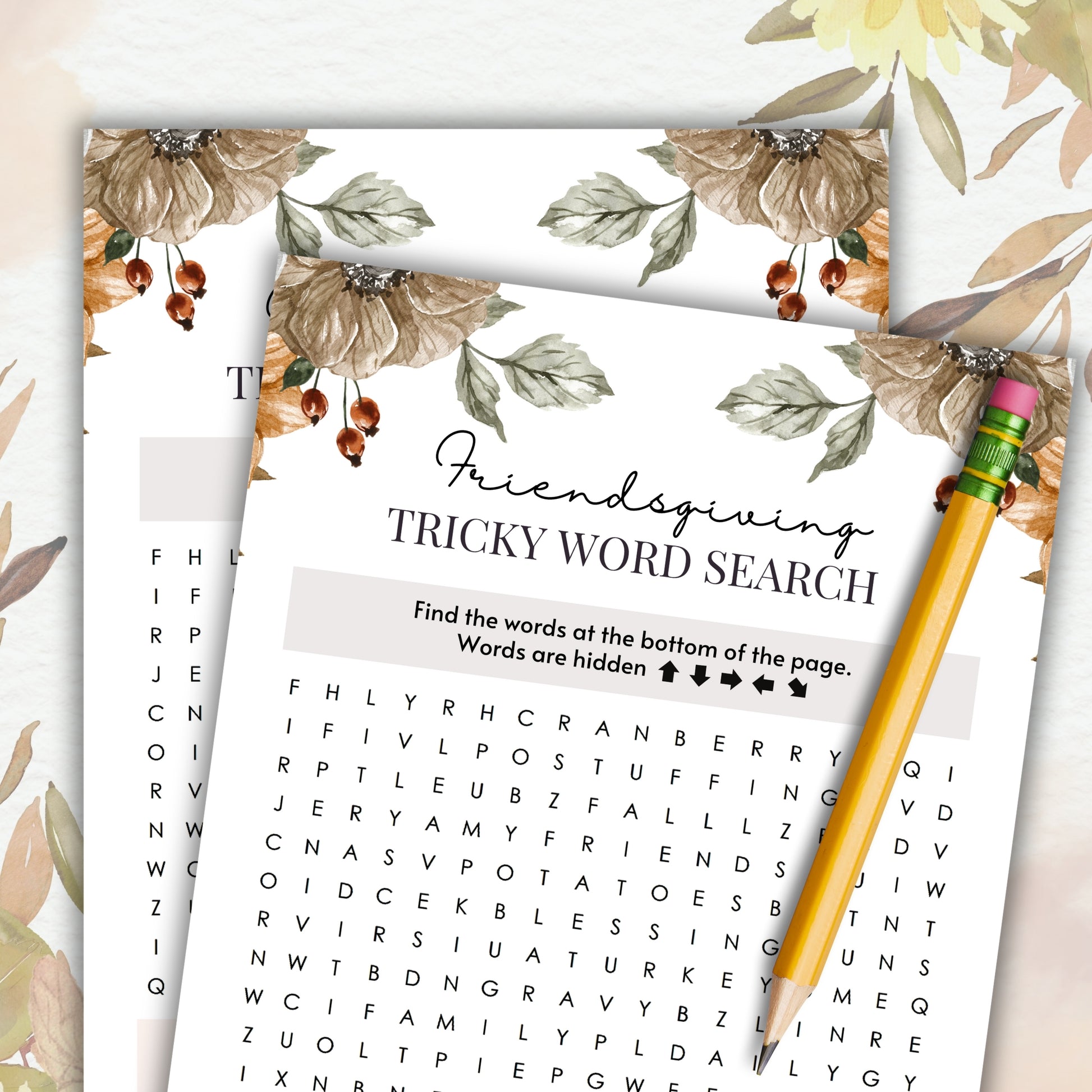This challenging word search is perfect for older teenagers or adults who want to enjoy a trickier (but still fun) game at any Friendsgiving or Thanksgiving event!