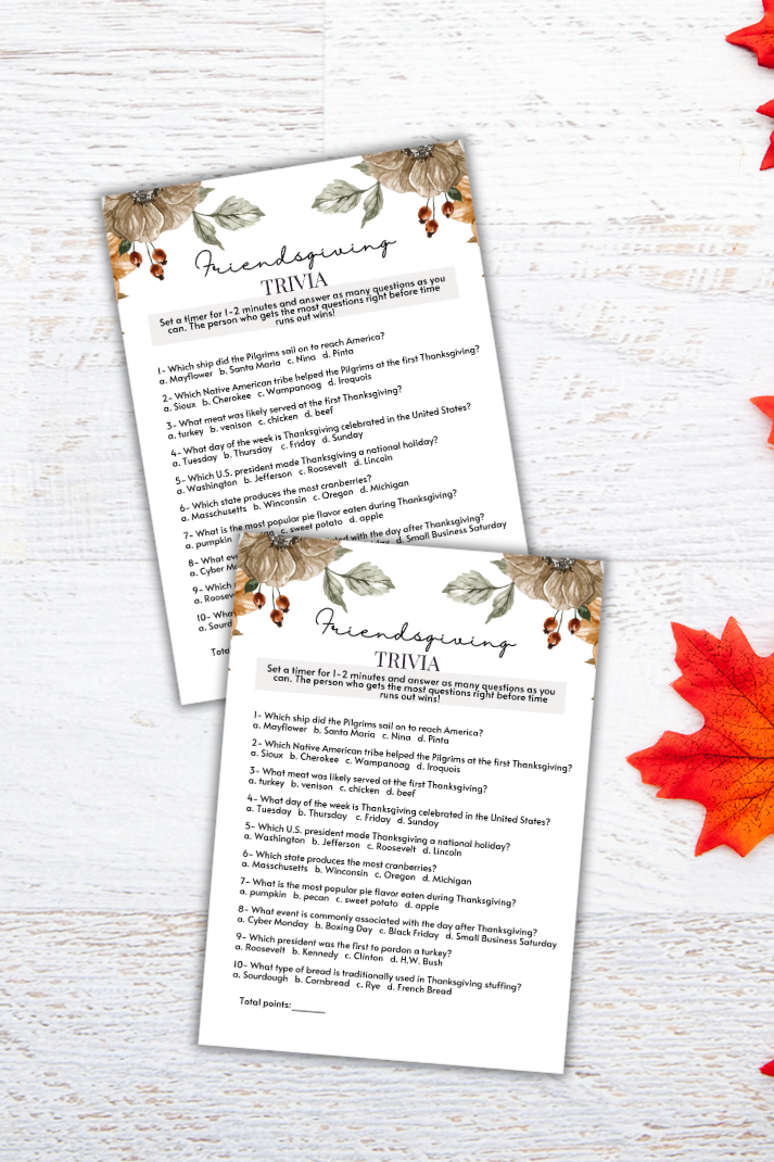 If you need a last-minute idea to liven up your celebrations, this exciting Friendsgiving-Themed trivia game from Party Prints Press is the perfect addition to your event.