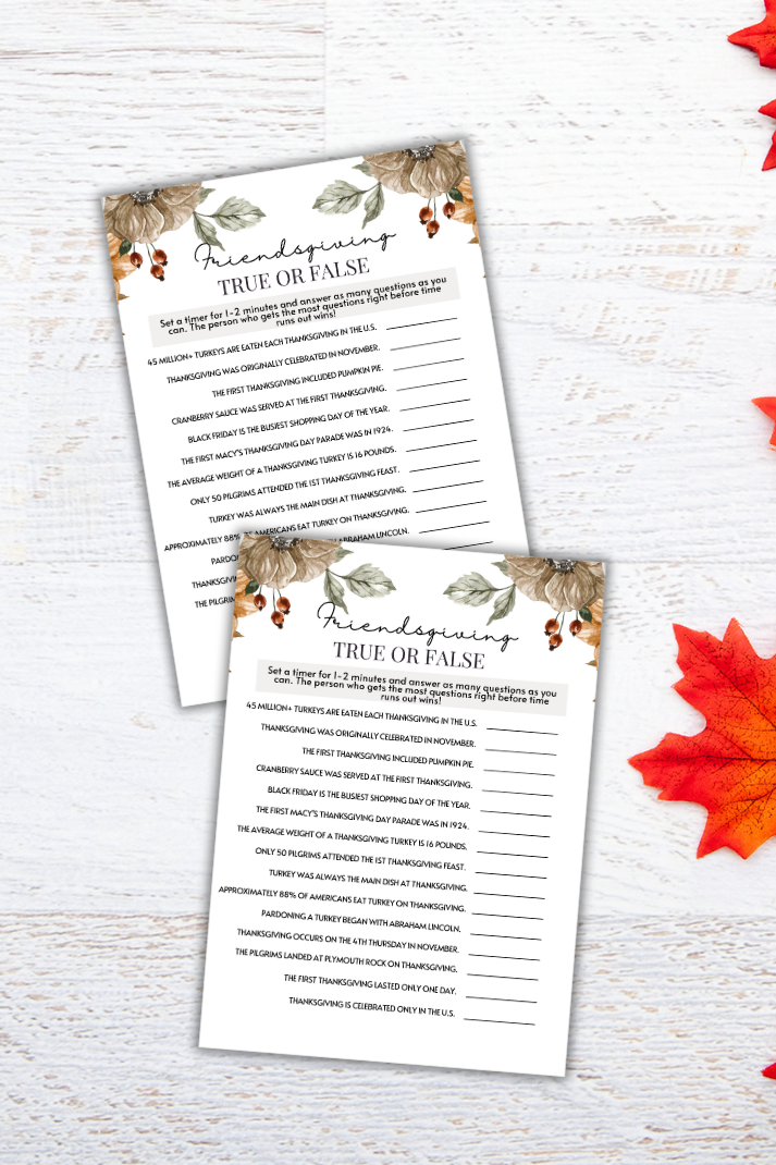 Their task? Decide whether each statement is true or false! From myths and legends to popular holiday customs, this game will test your guests' knowledge and reveal who’s the ultimate Thanksgiving expert.