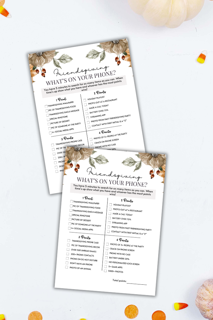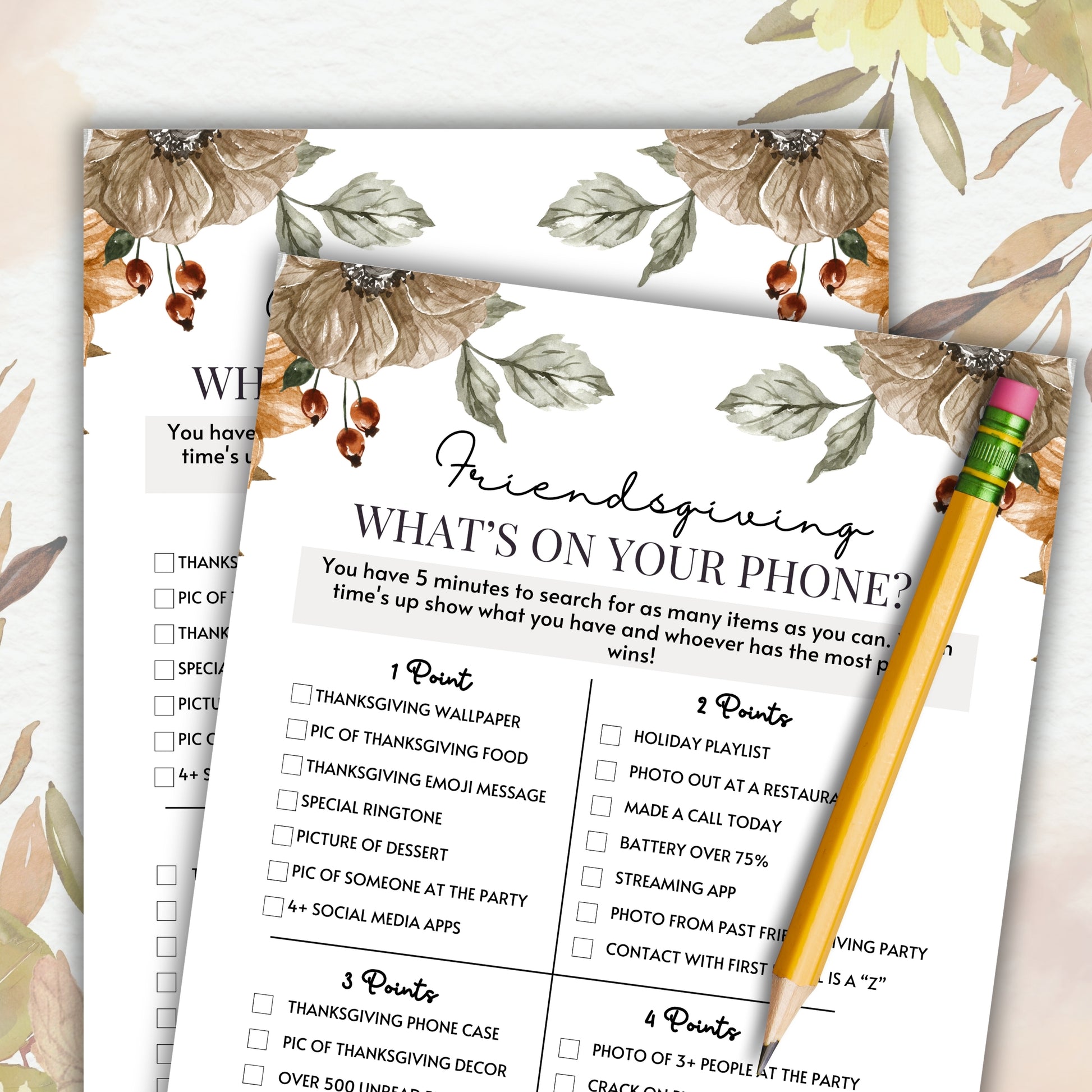 If you’re looking for a unique and engaging game to entertain your guests, the Friendsgiving What's On Your Phone Game is the perfect choice.
