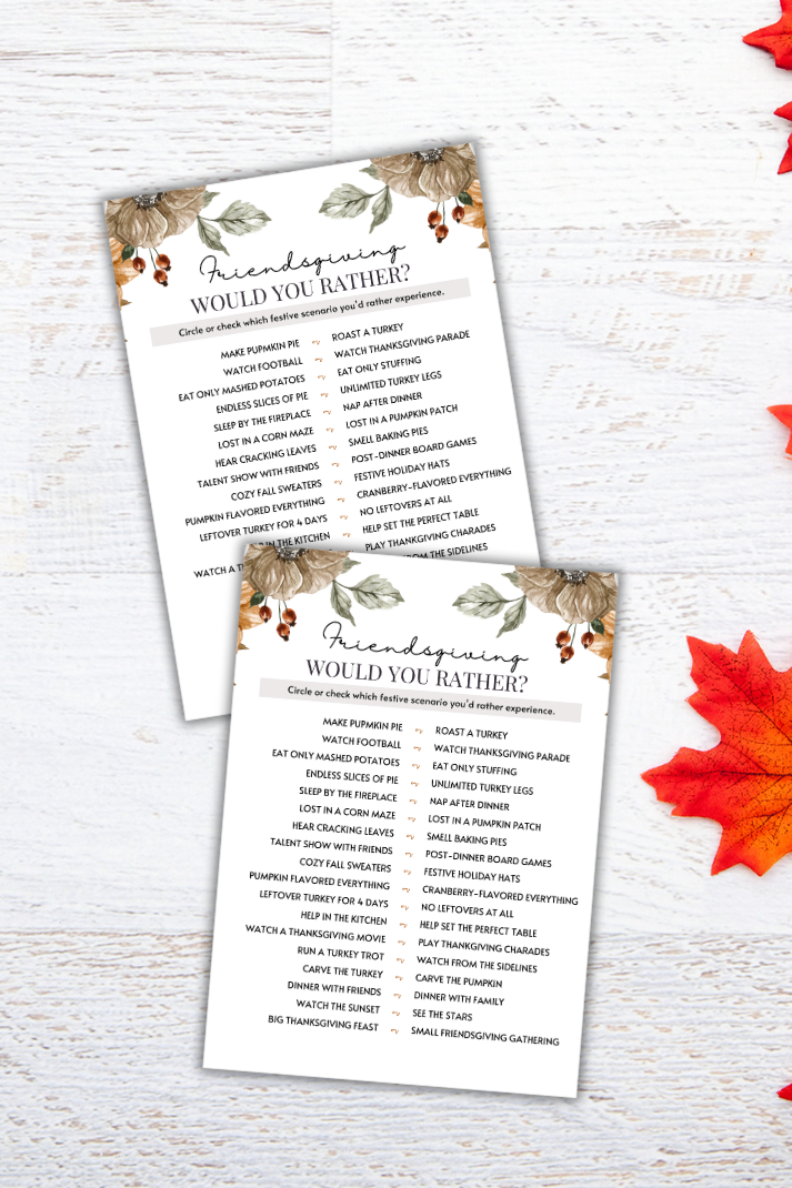 If you’re looking for a Thanksgiving party game that’s quick, easy, and guaranteed to get everyone talking, the Friendsgiving This or That Game is the perfect choice. It’s a lighthearted way to add some extra fun to your party and create lasting memories.