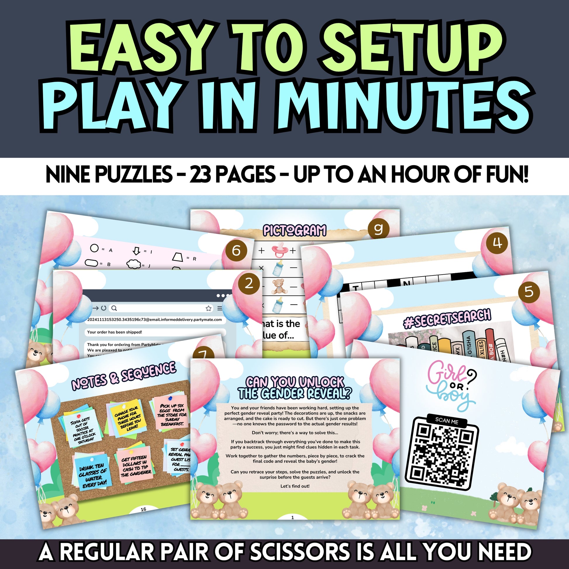 Looking for a fun and unique activity for your gender reveal party or baby shower? Look no further than the Gender Reveal Escape Room game from Party Prints Press!