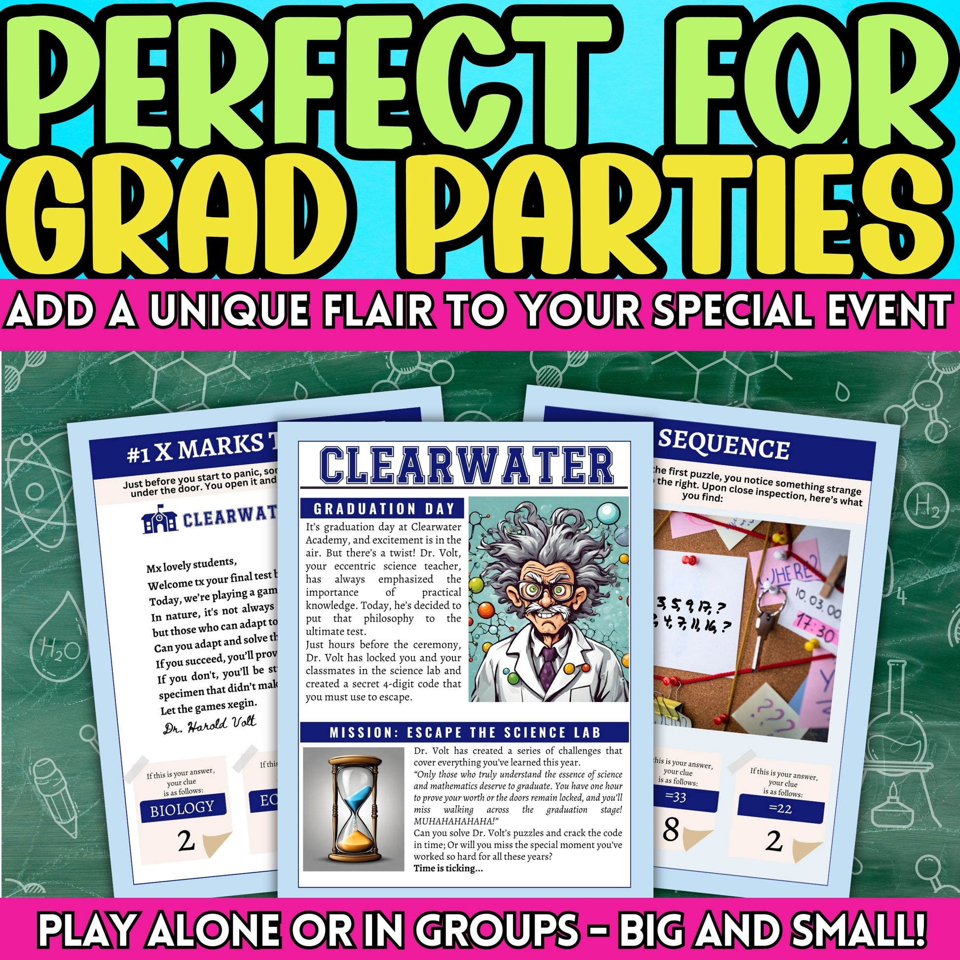 Perfect for teens ages 13 and up, and just as enjoyable for adults, this escape room transforms any space into an exciting science-themed challenge. It’s ideal for high school or college graduation parties, offering a fun and engaging way to celebrate these significant milestones.