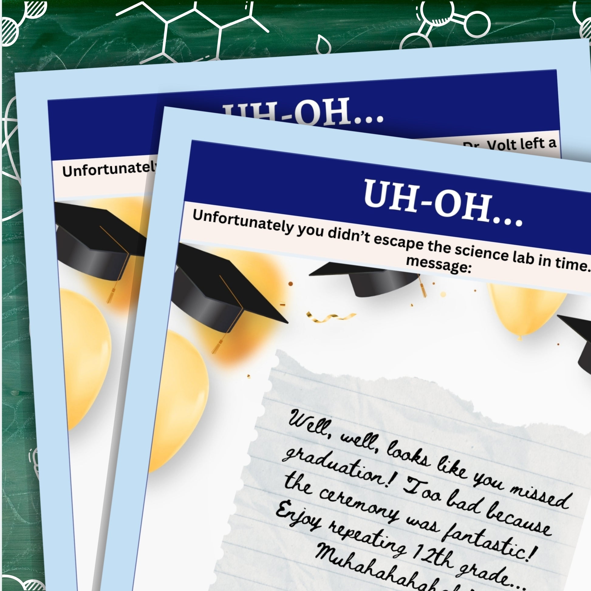 Now, it’s up to you and your team to navigate Dr. Volt’s complex puzzles and escape the lab in time to graduate. Can you solve Mr. Volt’s challenging riddles and secure your diplomas before it’s too late?