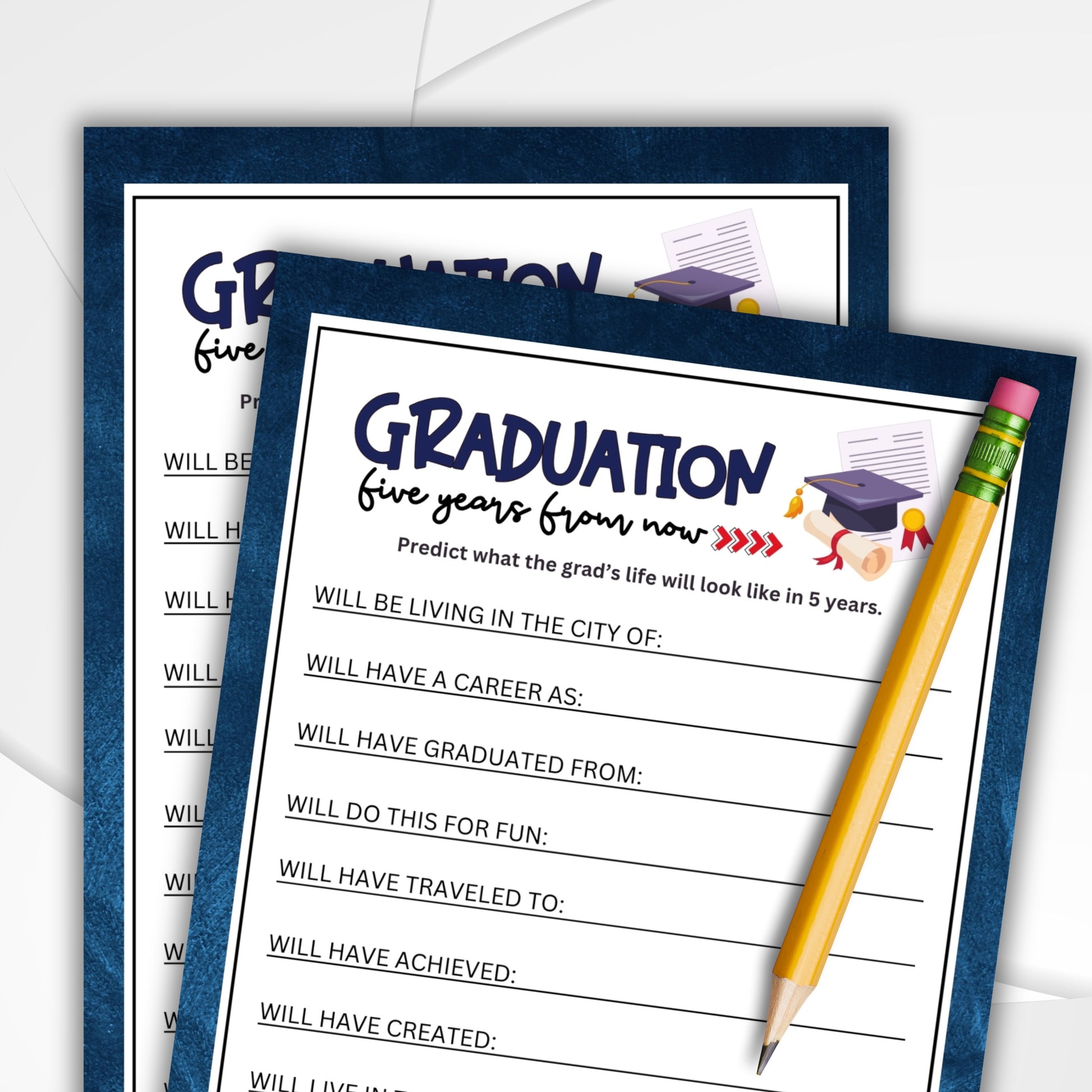 This game is unique from other grad games you may find because it encourages guests to use their knowledge of the graduate, add a little creativity, and predict where they will live, work, and play five years from now!