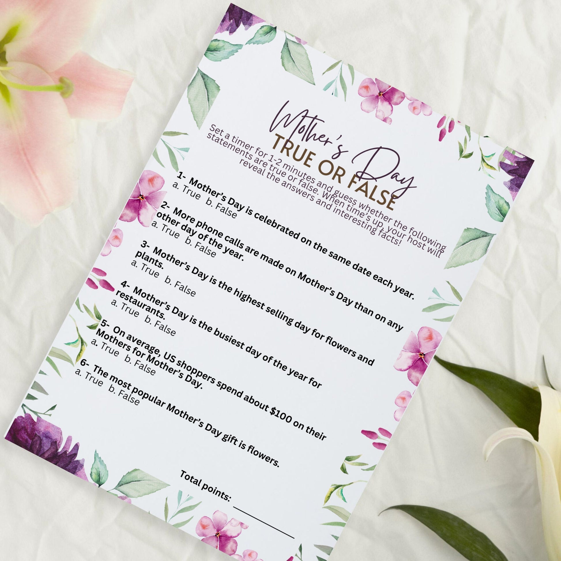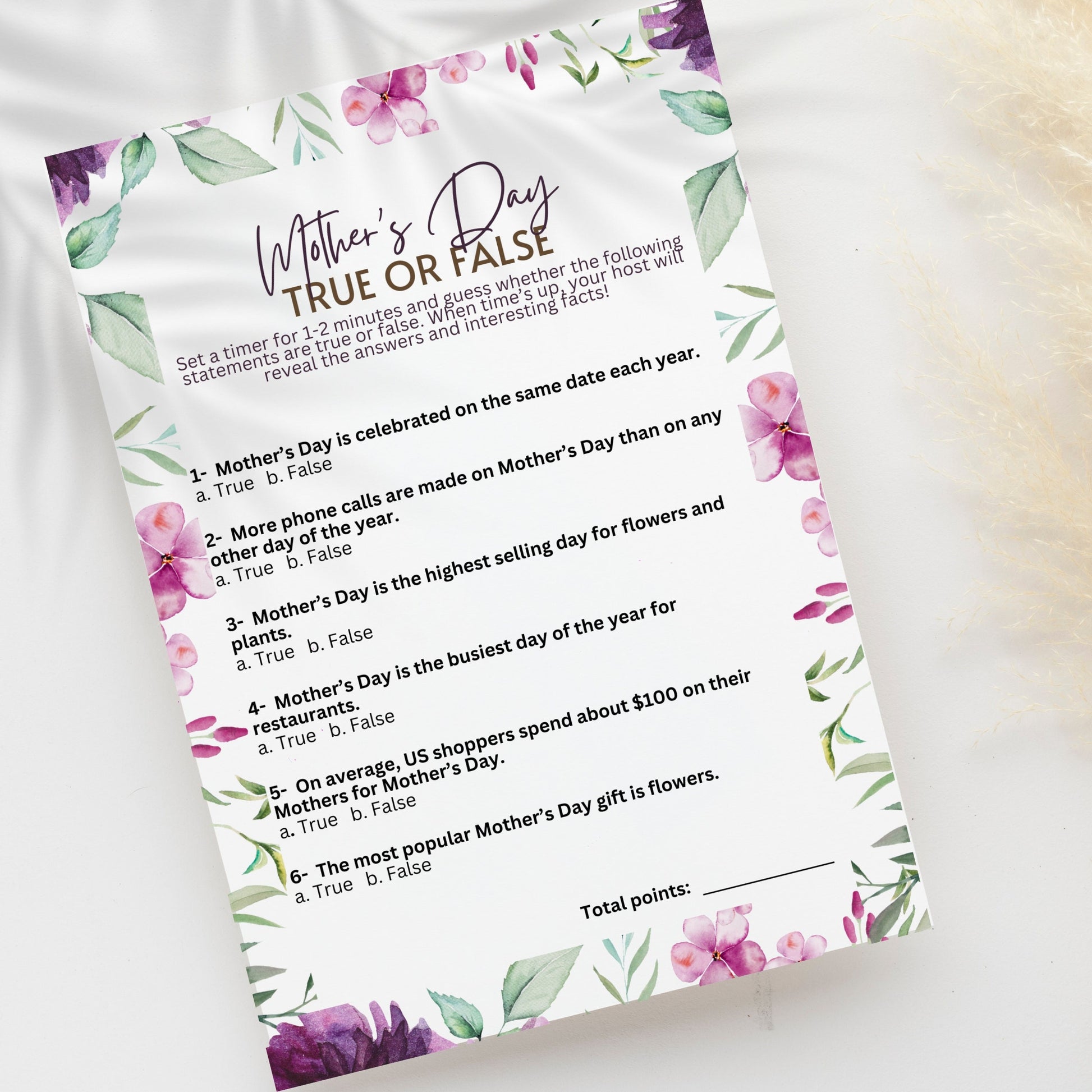 Test your knowledge of Mother's Day in this fun and engaging True or False-style trivia game!
