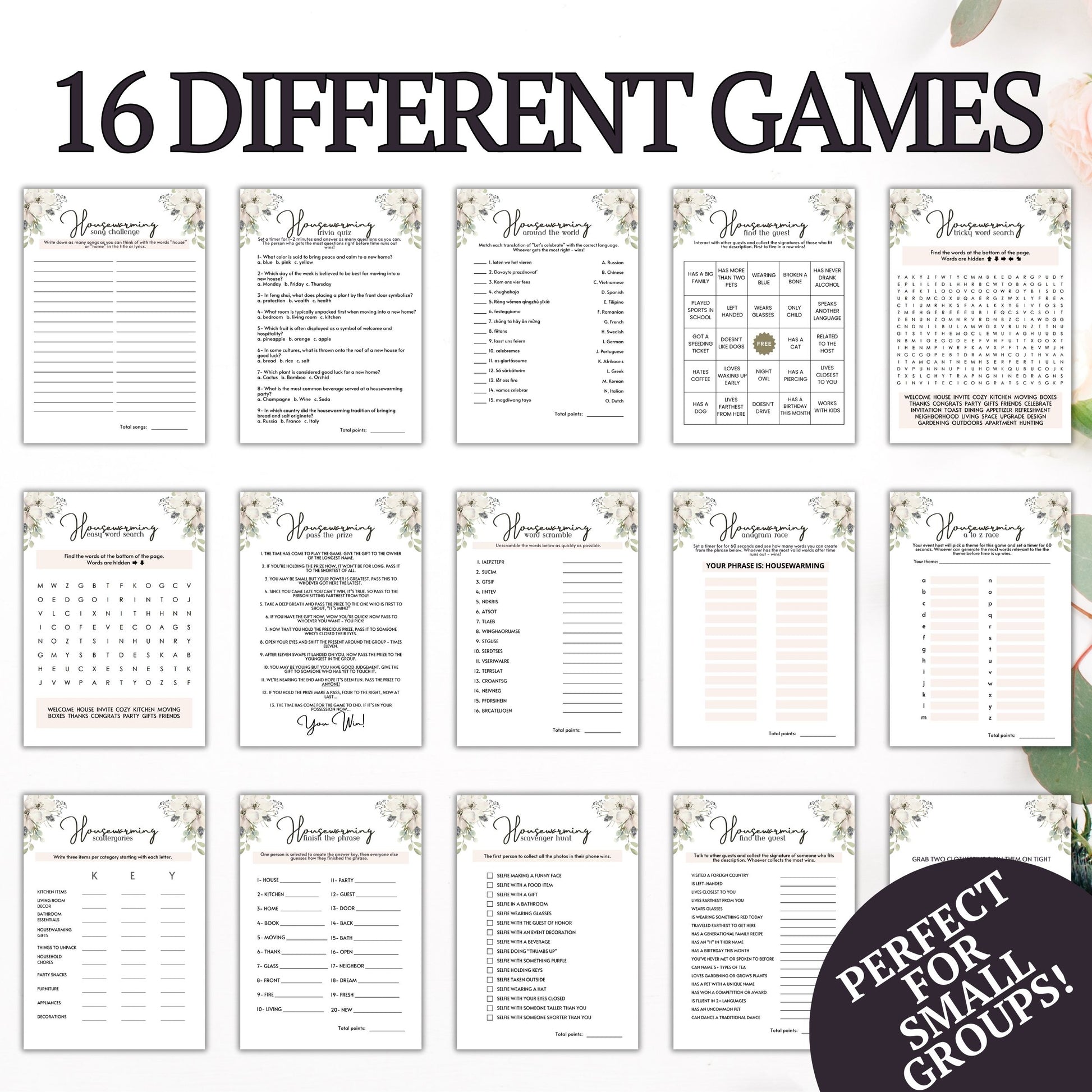Make your party fun and engaging with this elegant, minimalist, printable 16-game bundle of housewarming icebreaker games from Party Prints Press!