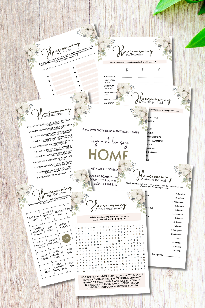 This set of simple games is perfect for any housewarming event, moving party, celebration of someone's new first home, apartment, or any other novel living arrangement.