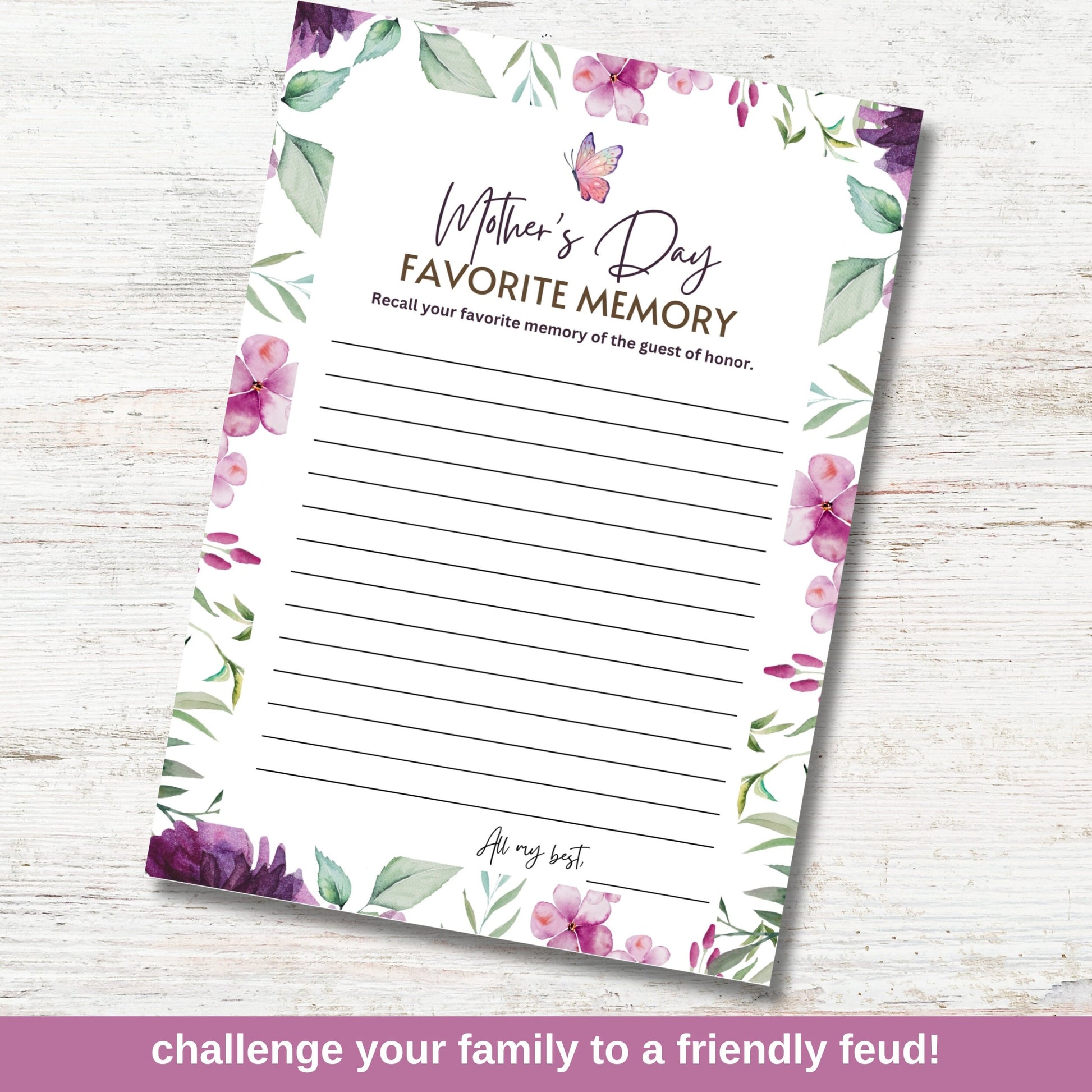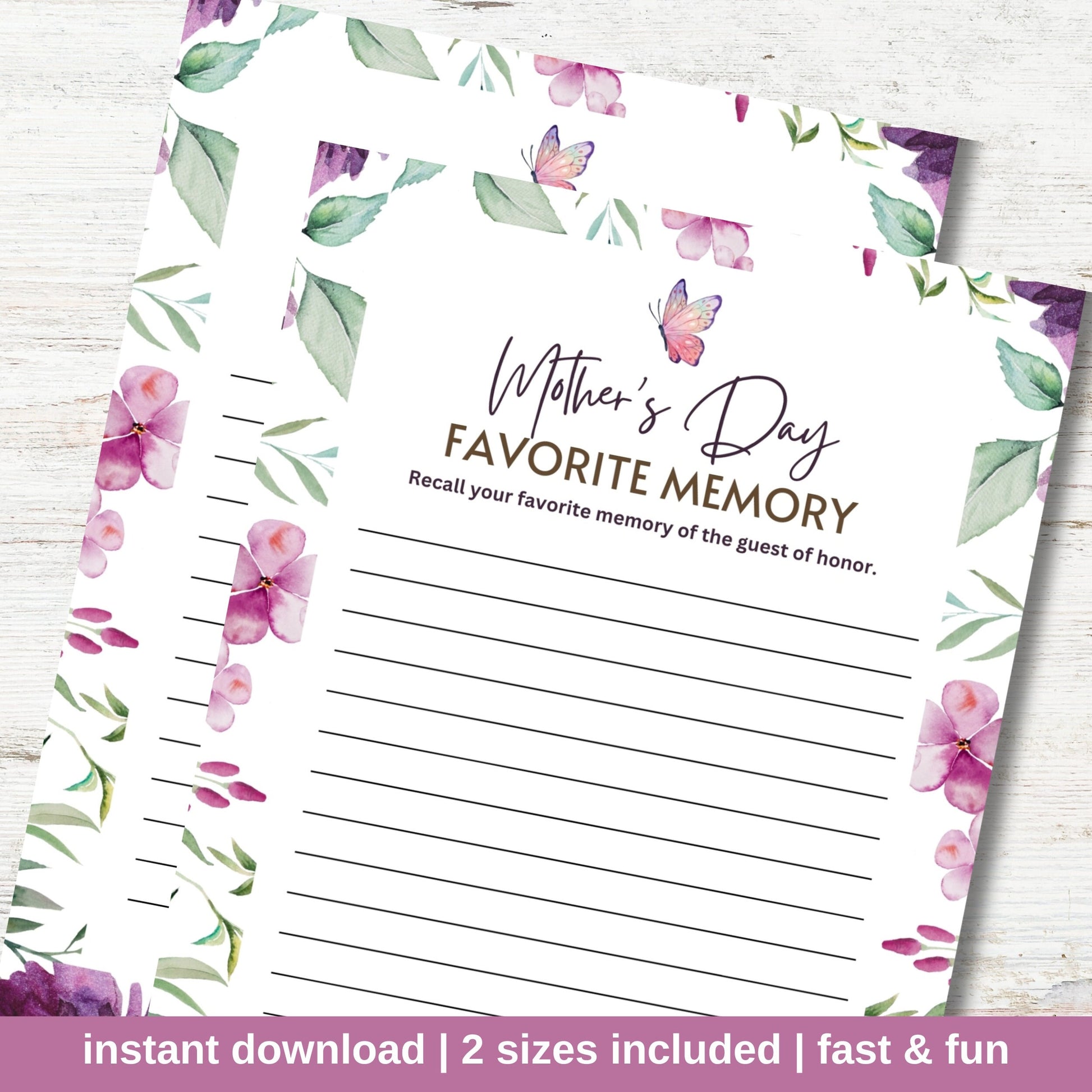 Honor the special woman in your life on Mother's Day with this sweet and sentimental "Favorite Memory" card activity from Party Prints Press!