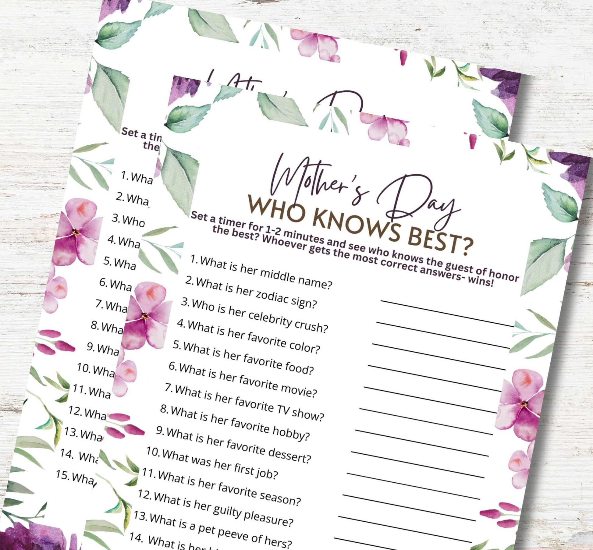 Challenge your family to a friendly feud game on Mother's Day with this simple and sweet "Who Knows Mom Best" trivia!