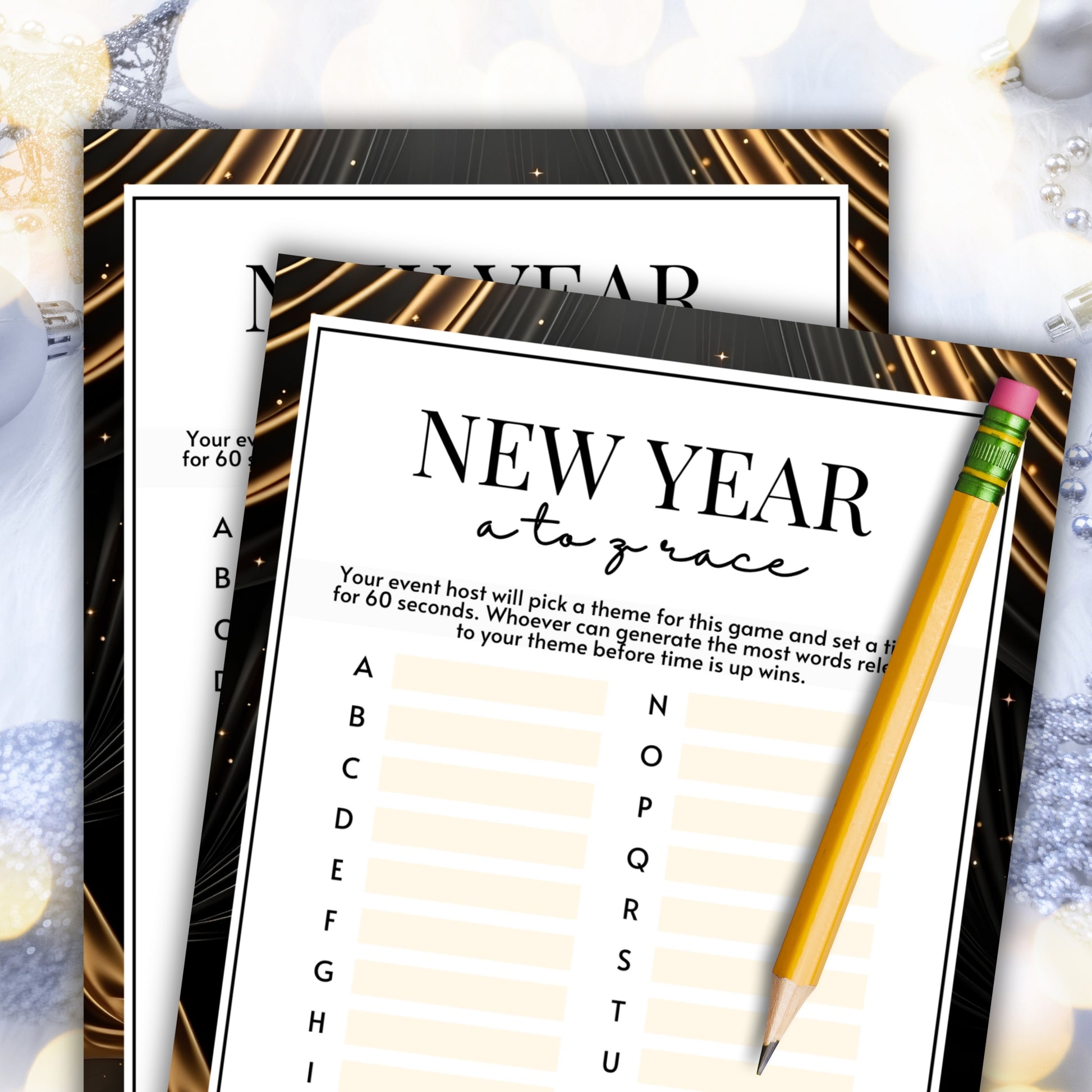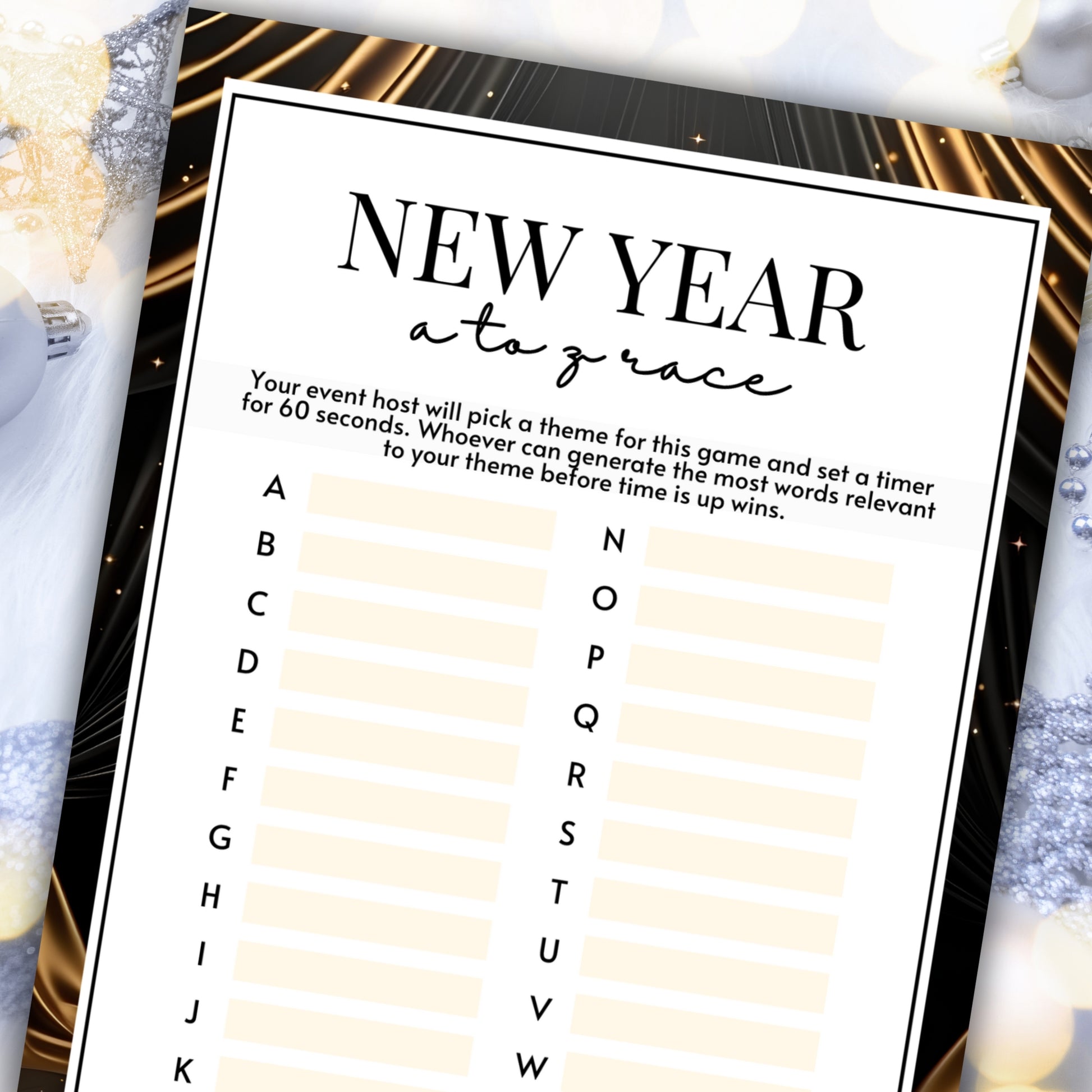 Whether you're celebrating New Year's at the office or at home with friends and family, this simple New Year's A to Z Race from Party Prints Press is just what you need!