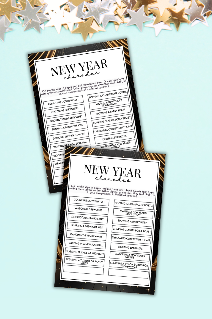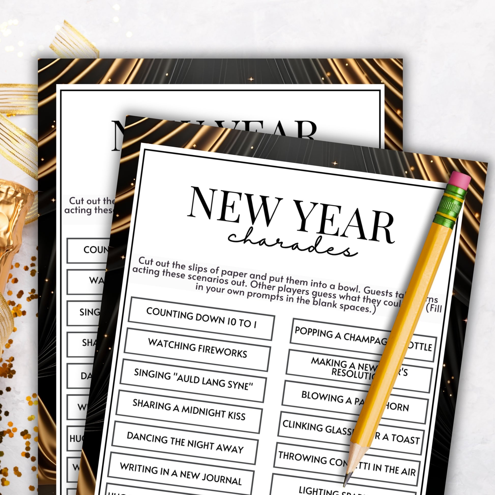 Looking for a fun and engaging game to play with family and friends during your new Year's Eve event? Look no further than this exciting printable charades game from Party Prints Press!