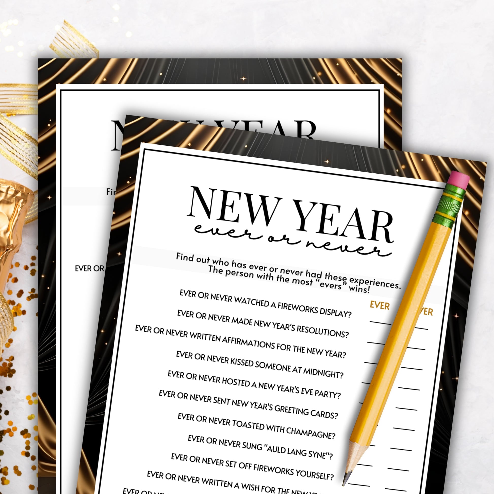 Uncover the secrets of your friends and family with the New Year's Eve Ever or Never Game! This fun and revealing game is the perfect way to add a dash of intrigue and laughter to your special event.