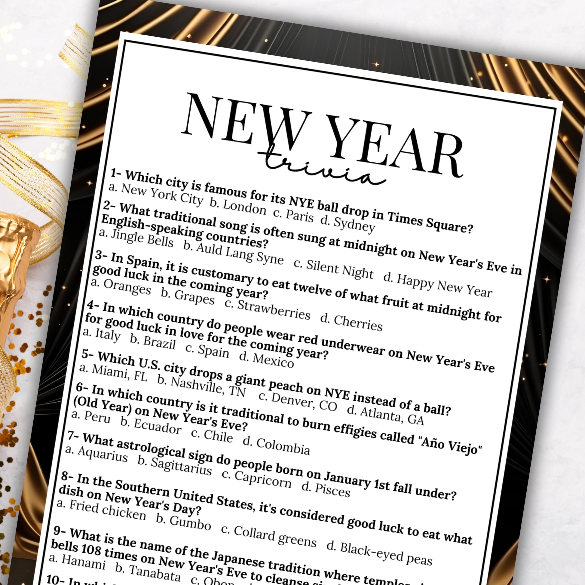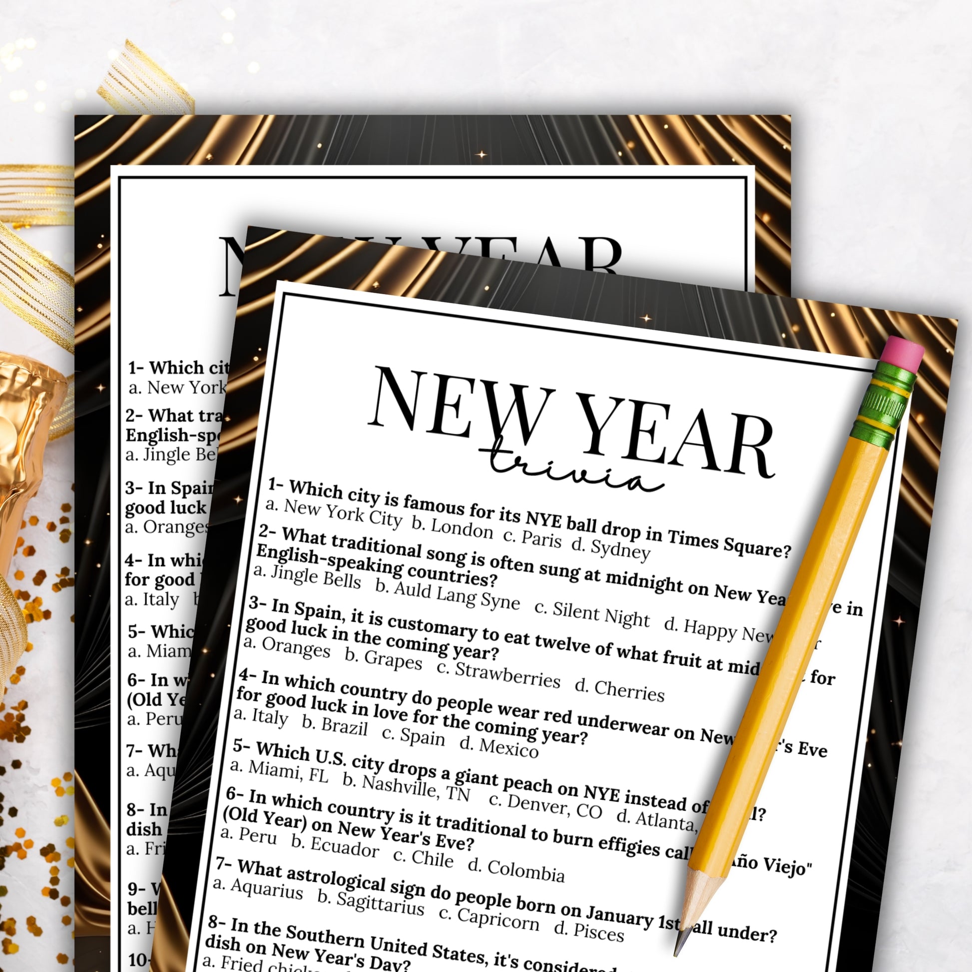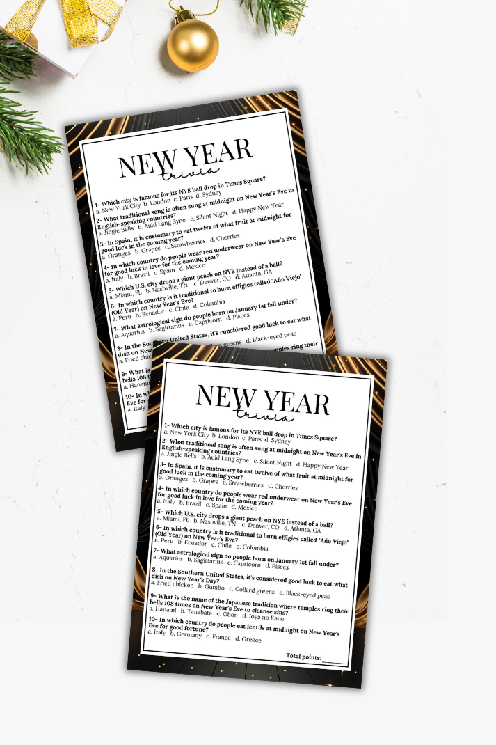 If you need a last-minute idea to liven up your celebrations, this exciting NYE trivia game from Party Prints Press is the perfect addition to your event.