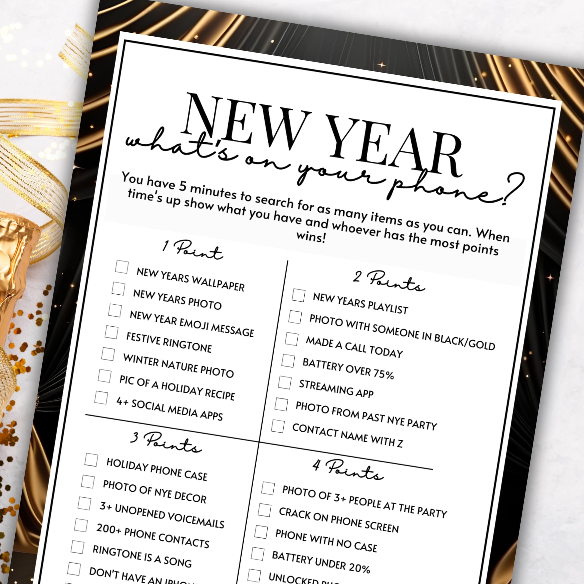 Bring some tech-savvy fun to your New Year's Eve party with the What's On Your Phone Game!