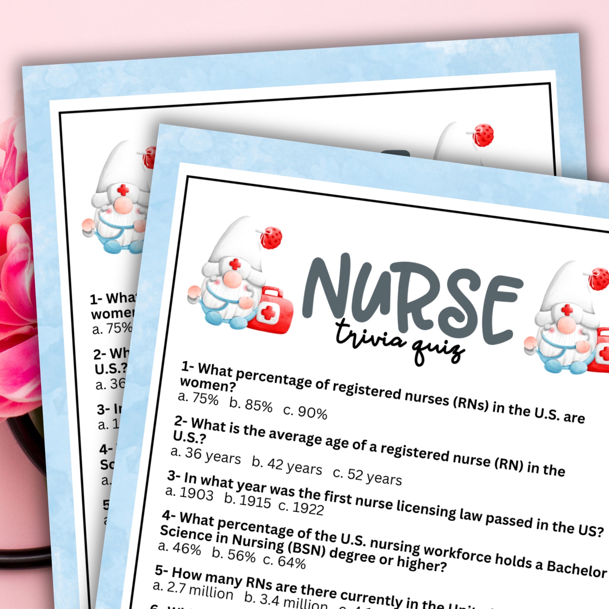 This printable Nurse Trivia game is perfect for Nurses Appreciation Week or other medical staff gatherings, work events, team-building activities, and breakroom fun.